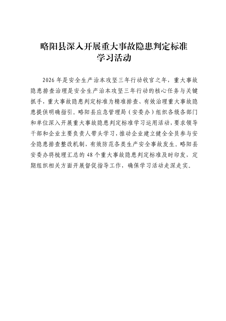 略阳县深入开展重大事故隐患判定标准学习活动