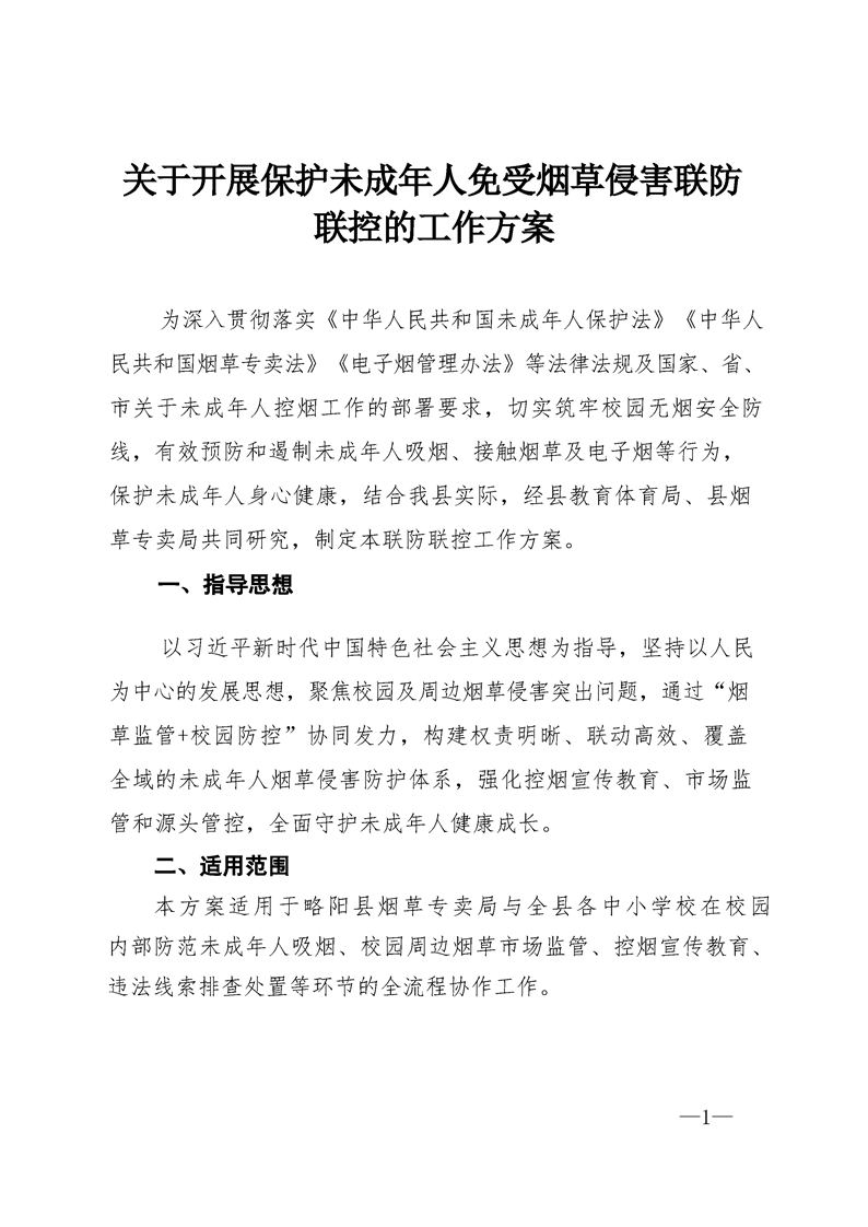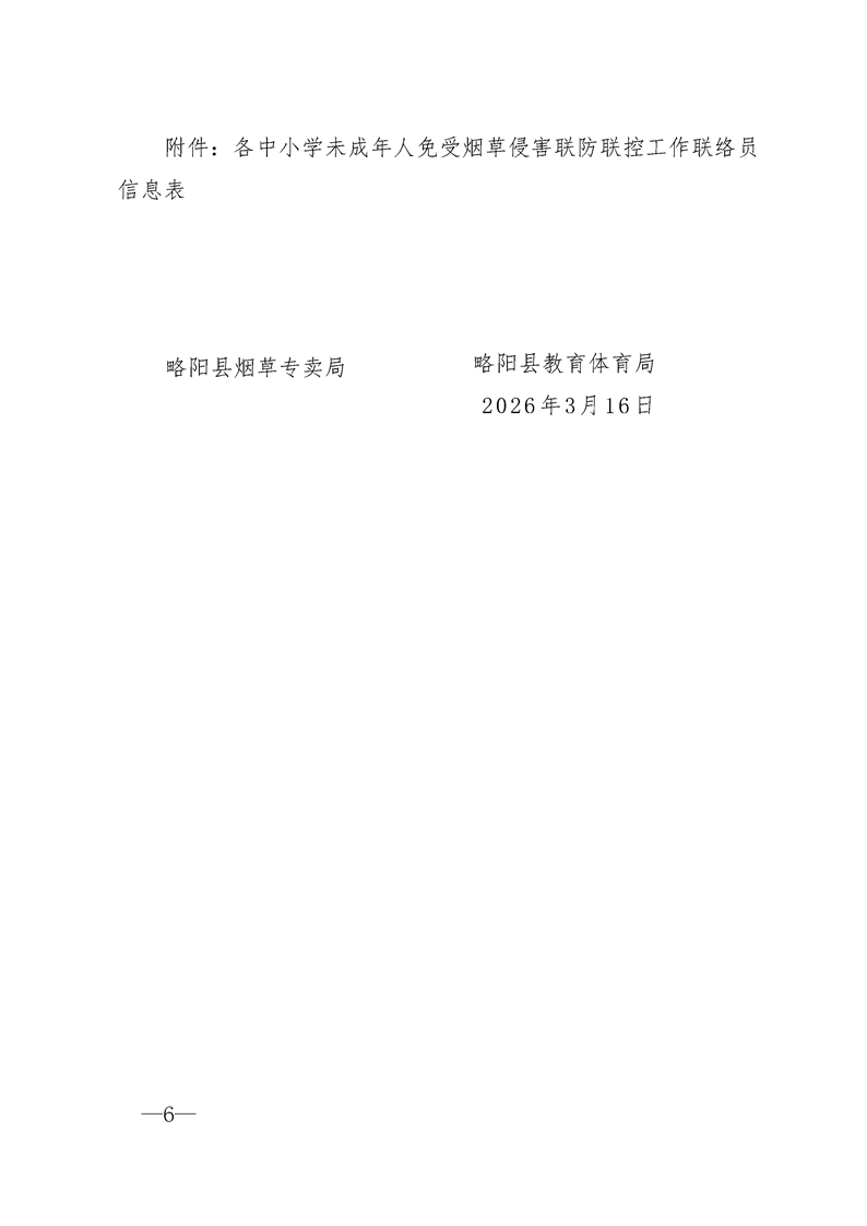 略阳县教育体育局关于开展保护未成年人免受烟草侵害联防联控的工作方案