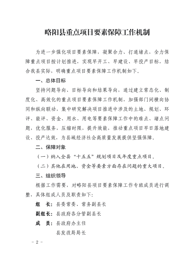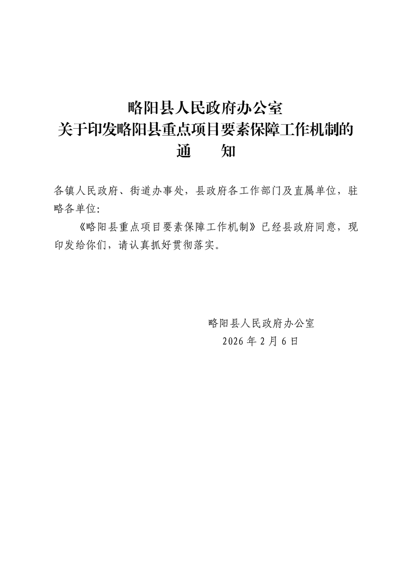 略阳县人民政府办公室关于印发略阳县重点项目要素保障工作机制的通知