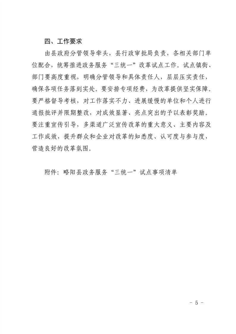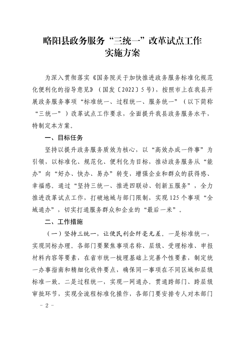 | 内容概述 | 略阳县人民政府办公室关于印发政务服务“三统一”改革试点工作实施方案的通知 | ||||