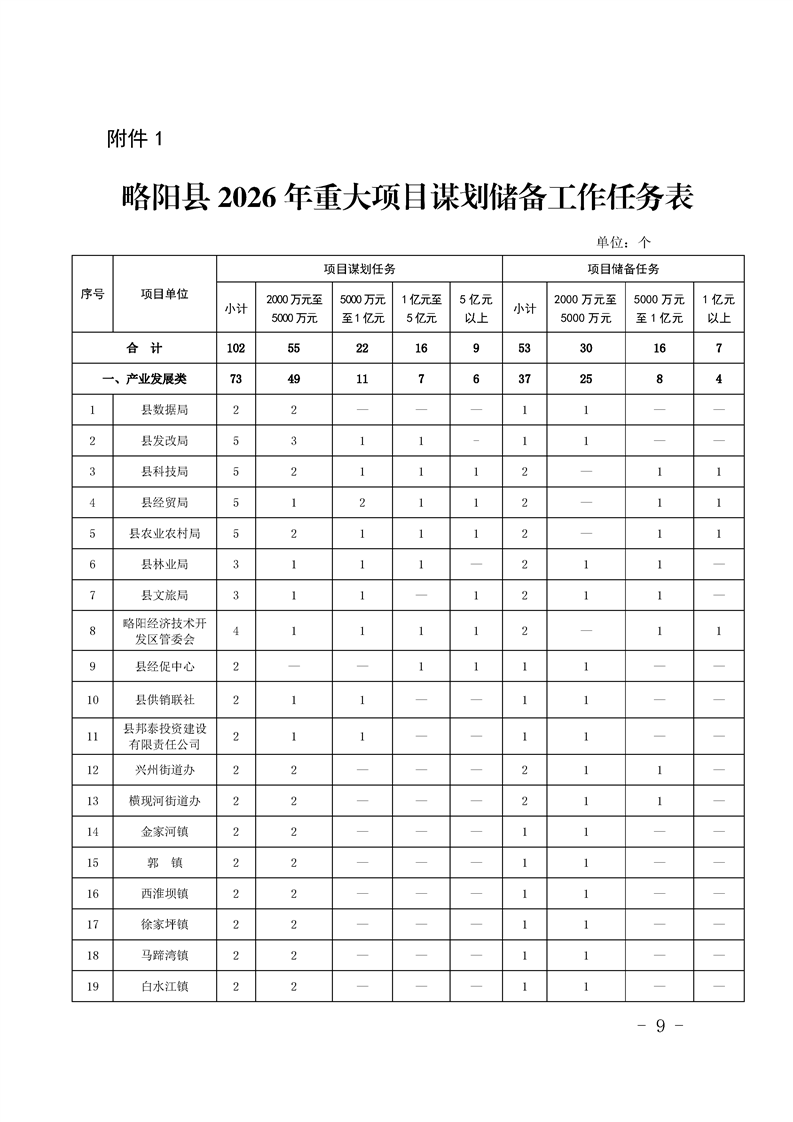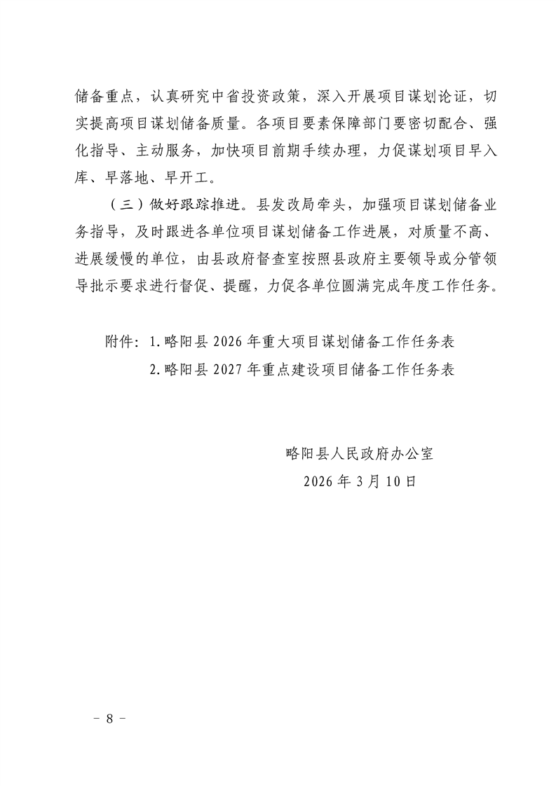 | 内容概述 | 略阳县人民政府办公室关于做好2026年重大项目谋划储备和2027年重点建设项目储备工作的通知 | ||||