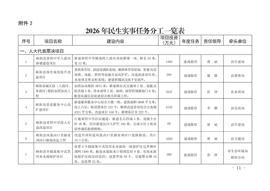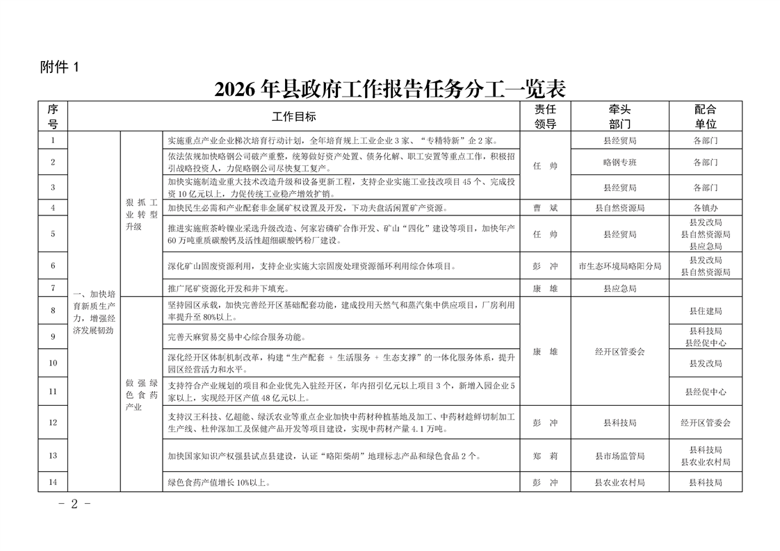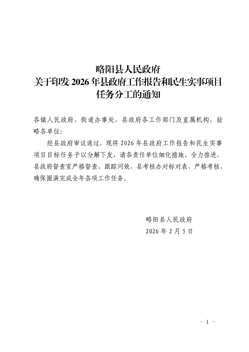 | 内容概述 | 略阳县人民政府关于印发2026年县政府工作报告和民生实事项目任务分工的通知 | ||||