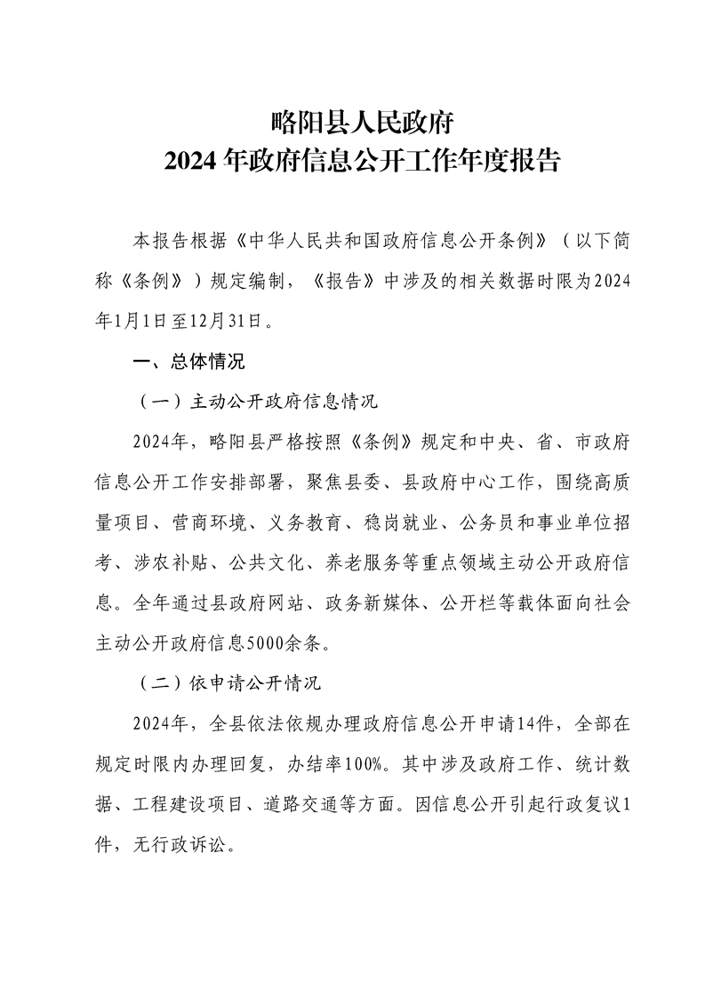 略阳县人民政府2024年政府信息公开工作年度报告