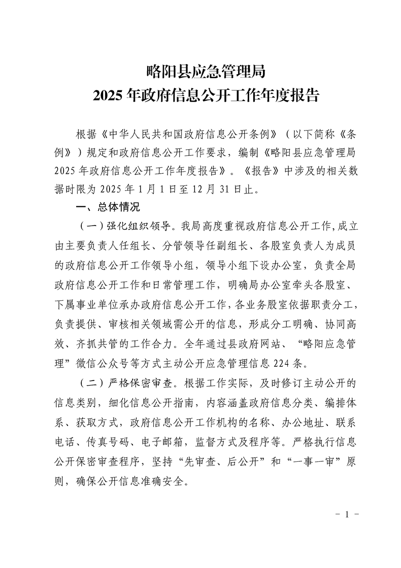 略阳县应急管理局2025年政府信息公开工作年度报告