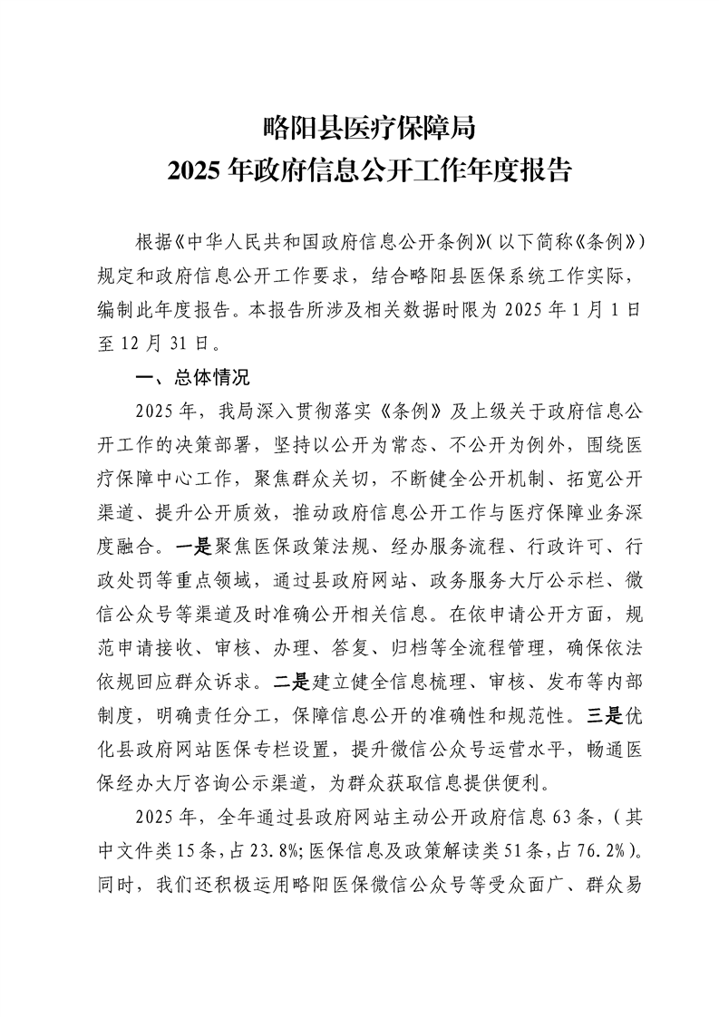 略阳县医疗保障局2025年政府信息公开工作年度报告