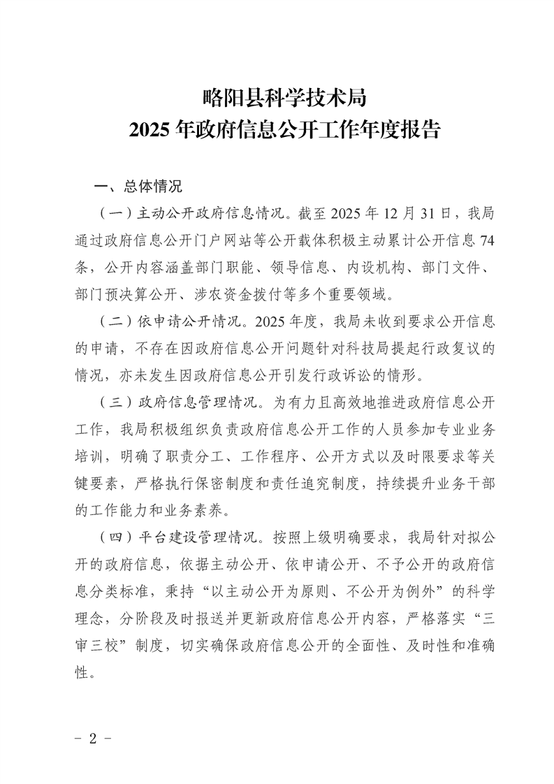 略阳县科学技术局2025年政府信息公开工作年度报告