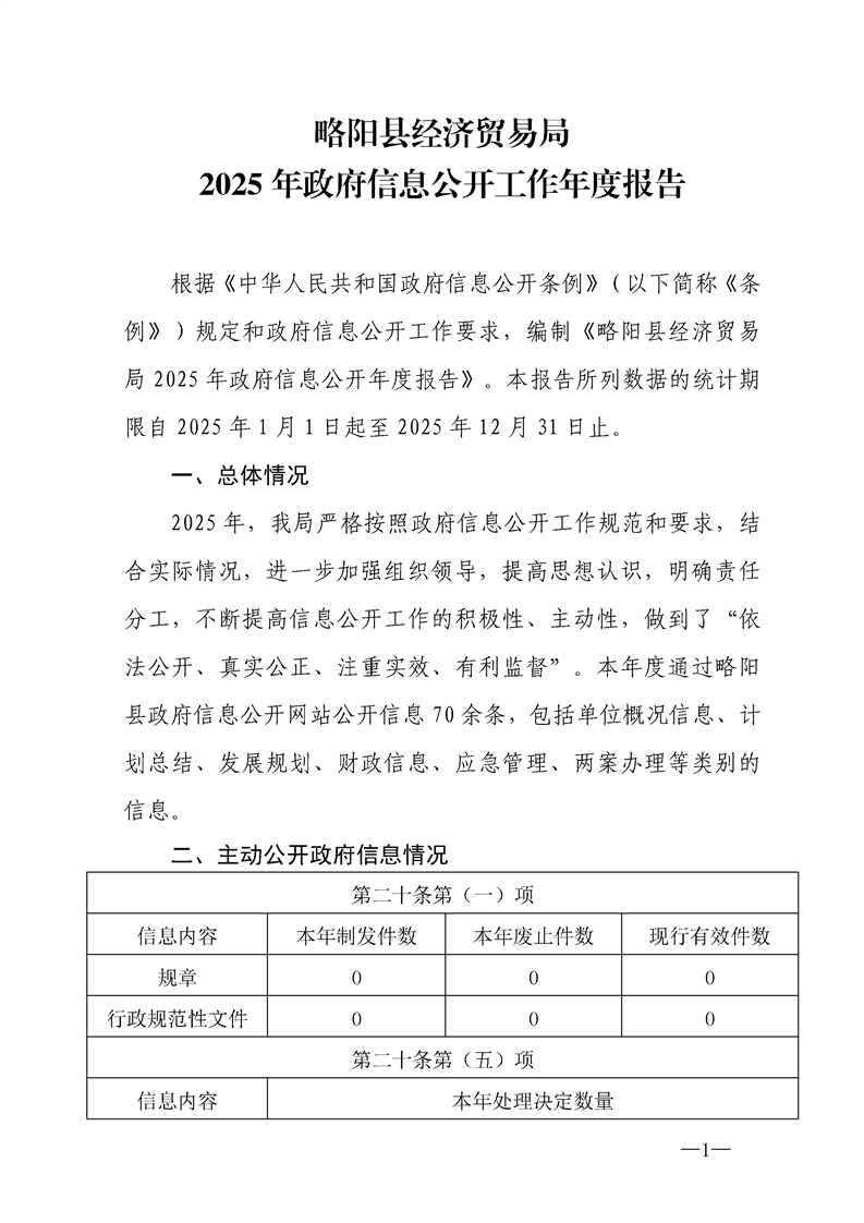略阳县经济贸易局2025年政府信息公开工作年度报告