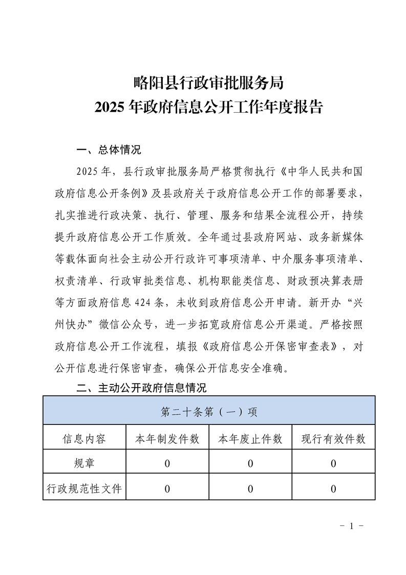 略阳县行政审批服务局2025年政府信息公开工作年度报告