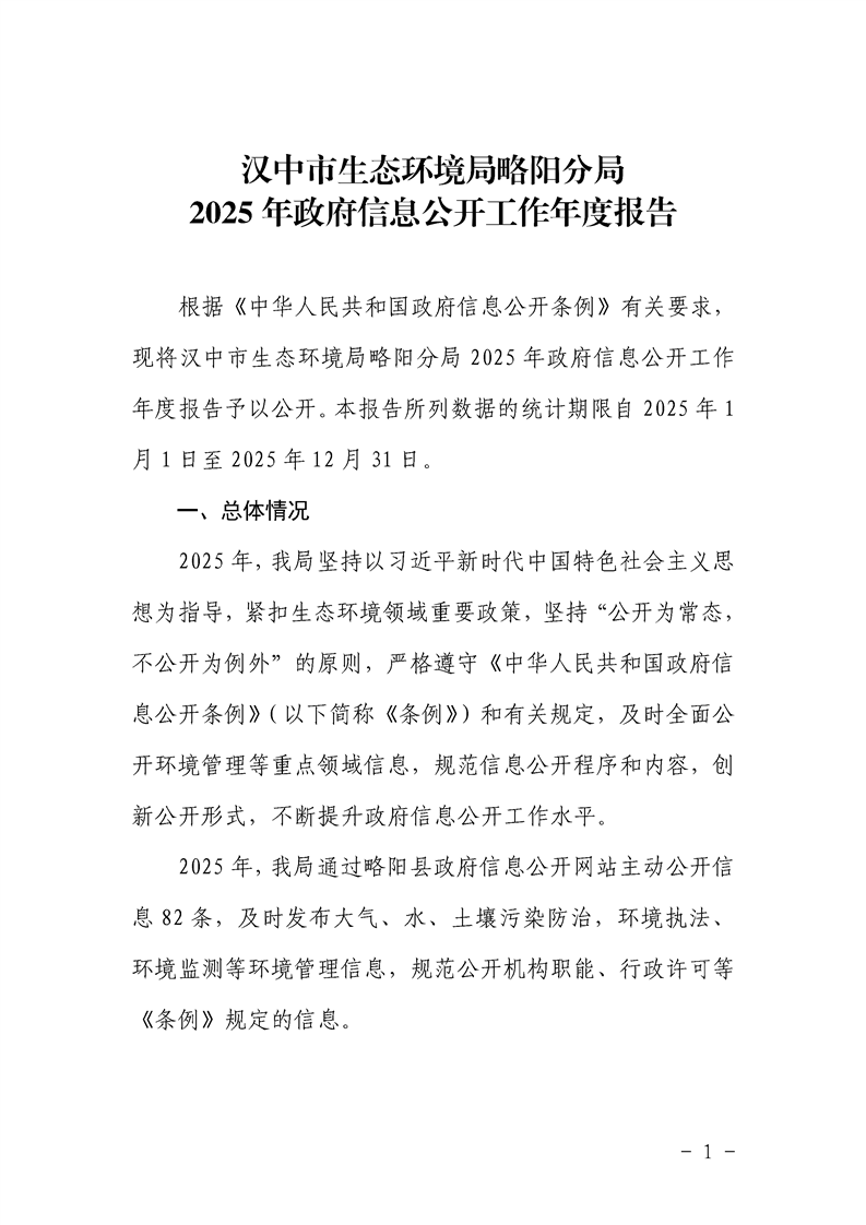 汉中市生态环境局略阳分局2025年政府信息公开工作年度报告