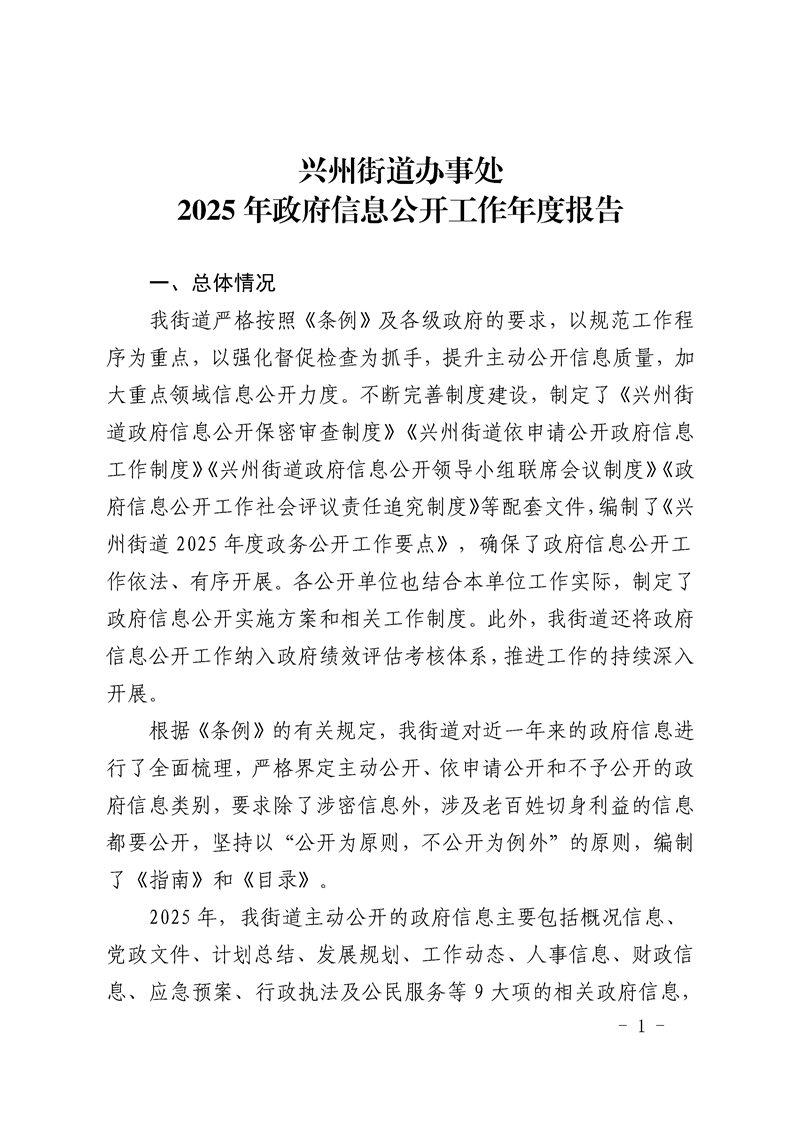兴州街道办事处2025年政府信息公开工作年度报告