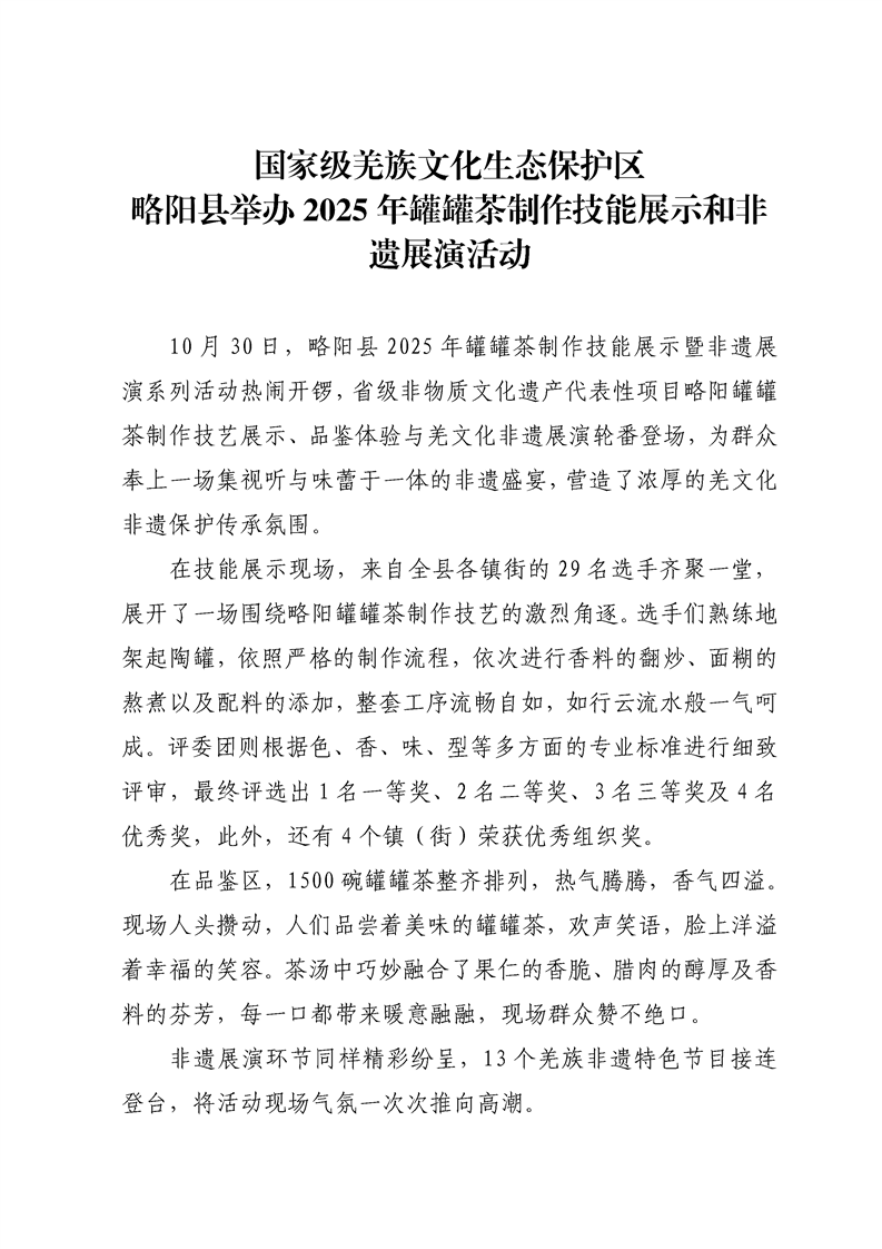 国家级羌族文化生态保护区略阳县举办2025年罐罐茶制作技能展示和非遗展演活动