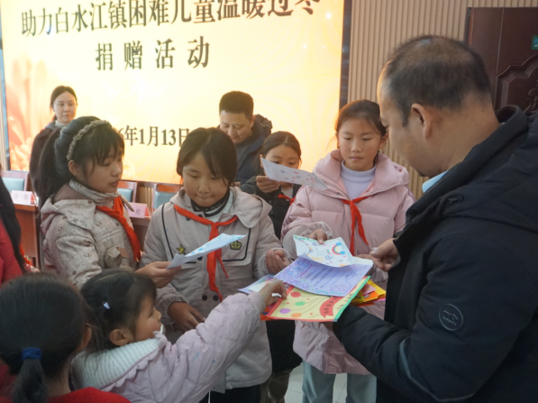 活动现场,工作人员将棉衣、手套、围巾等御寒物资一一送到孩子们手中,让孩子们在寒冬里感受到浓浓暖意,让爱心暖流在白水江镇涓滴汇聚、持续传递。捐赠方勉励孩子们坚定理想信念,勤奋刻苦学习,以积极向上的姿态直面成长路上的挑战。受赠学生代表真挚的话语表达了对爱心企业的感激之情,并郑重承诺,将把这份关爱转化为奋进动力,以优异成绩回报社会各界的殷切期望。