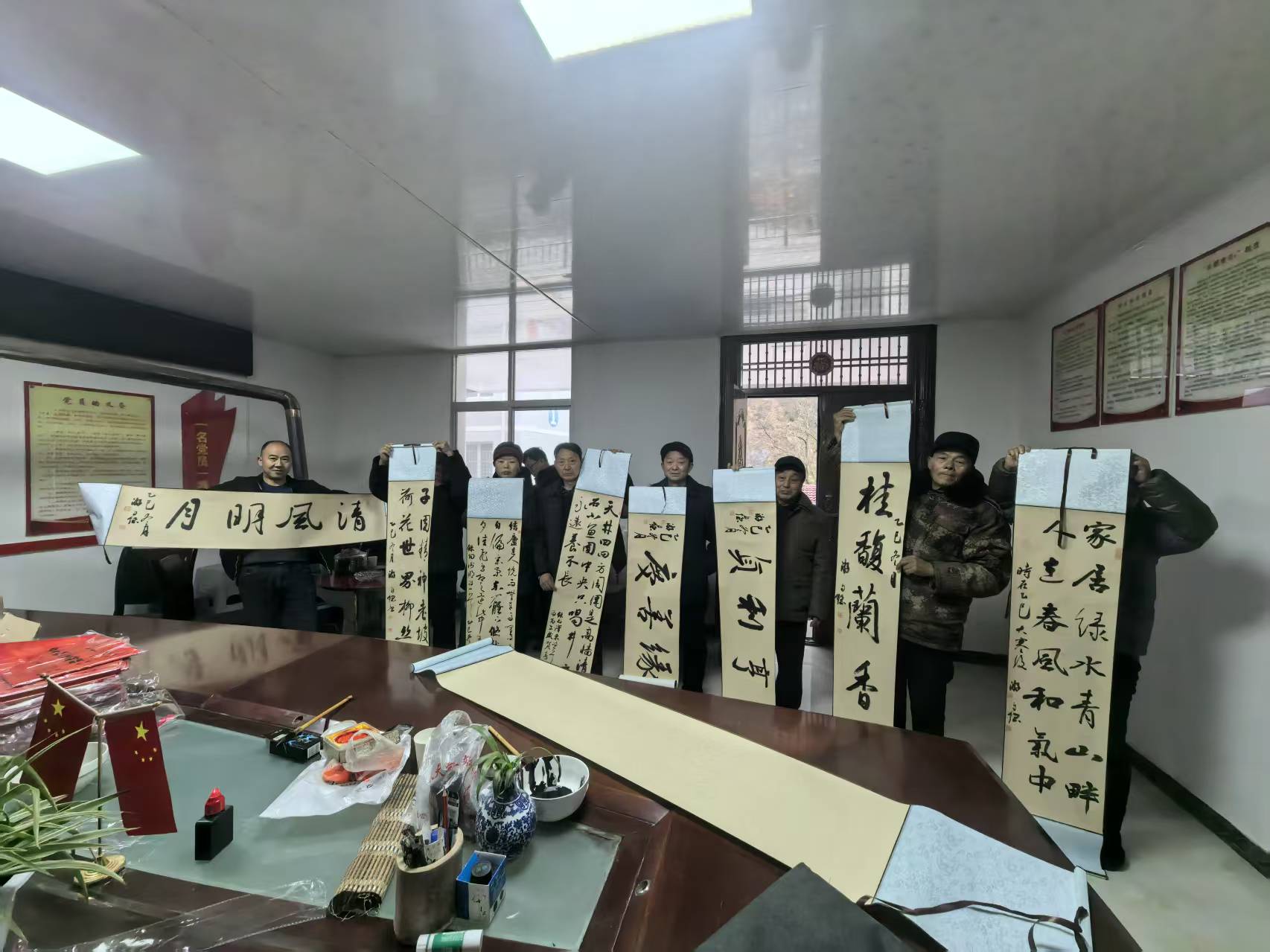 县文艺志愿者现场挥毫泼墨,凝神运笔间,一副副寓意吉祥的春联、一件件饱含墨香的书法作品跃然纸上,将新春的美好期许与诚挚祝福,通过笔墨传递到村民心坎上,让大家在墨香红纸间感受浓浓年味。