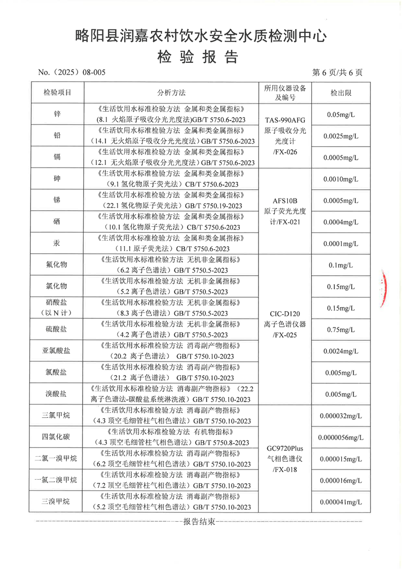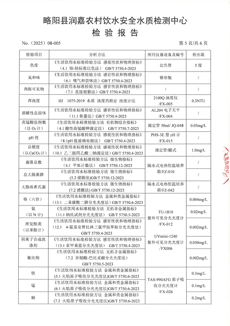 水质检测报告8月-5城区管网末梢-棕树湾