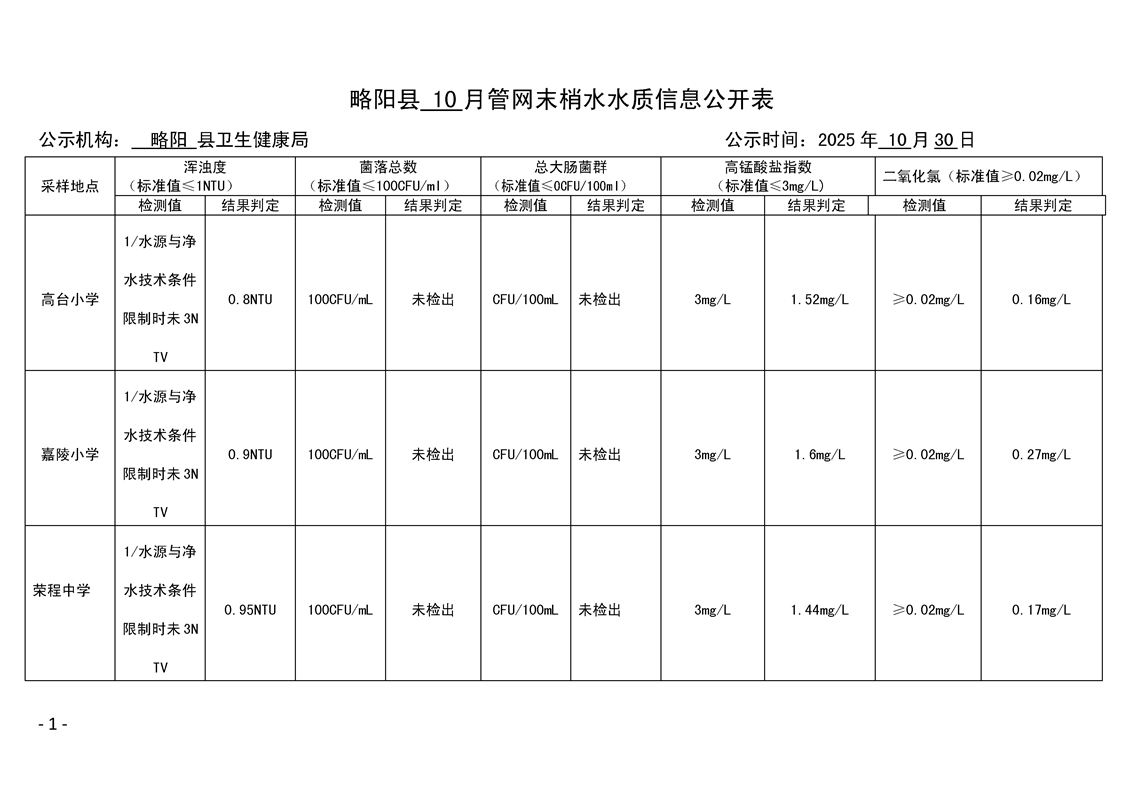 2025年生活饮用水监测10月公示
