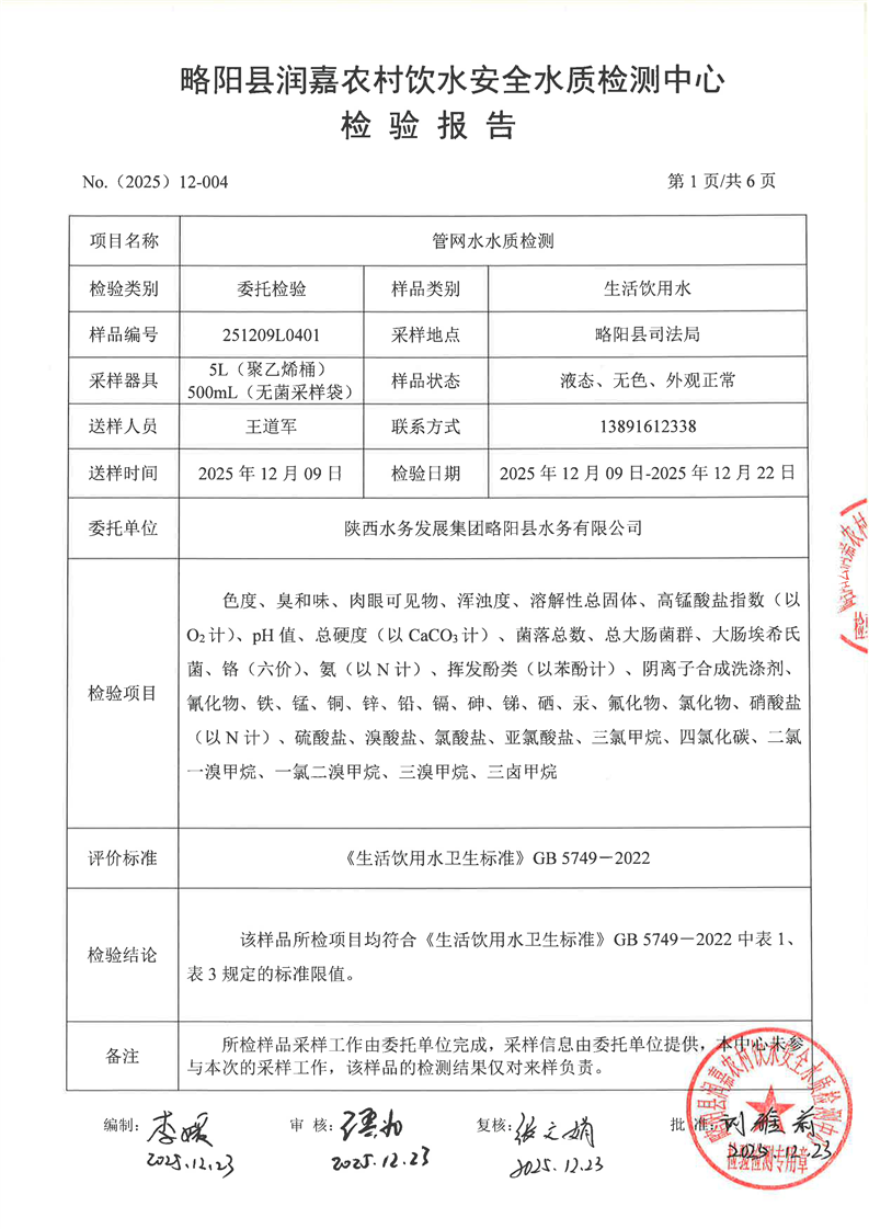 水质检测报告12月-4城区管网-司法局