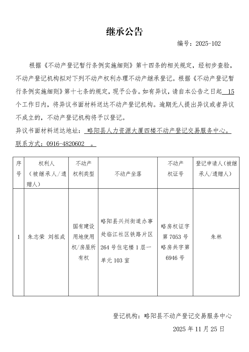 继承公告编号:2025-102