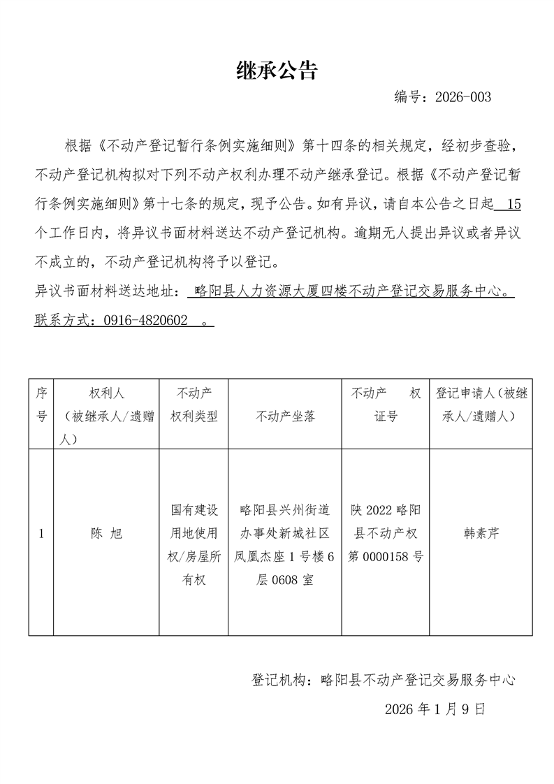 继承公告编号:2026-003