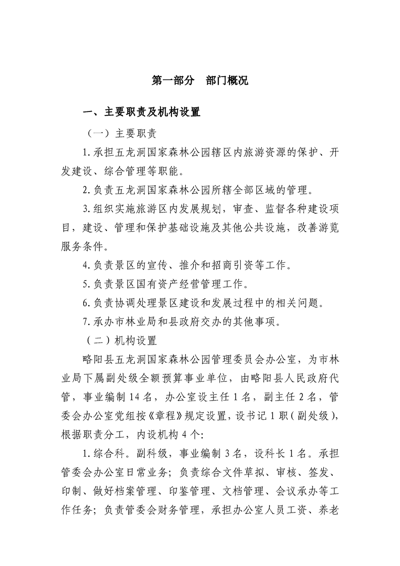 | 内容概述 | 略阳县五龙洞国家森林公园管理委员会办公室2024年部门预算公开 | ||||