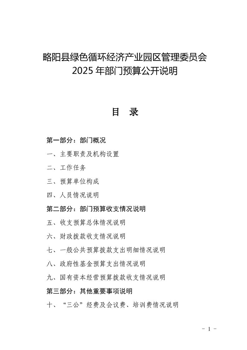 | 内容概述 | 略阳县绿色循环经济产业园区管理委员会2025年部门预算公开说明 | ||||