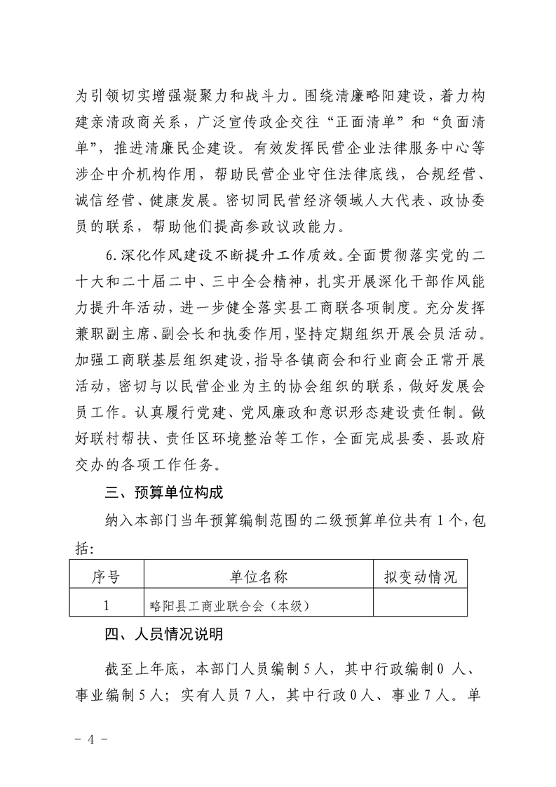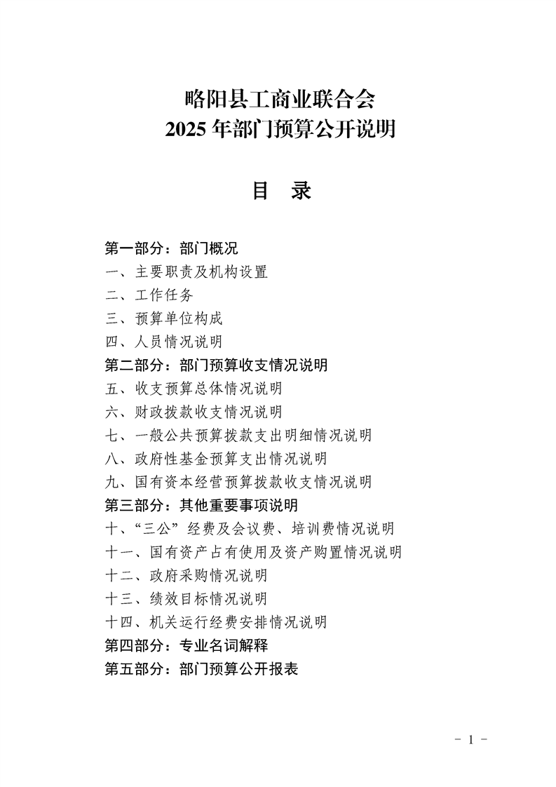 | 内容概述 | 略阳县工商业联合会2025年部门预算公开说明 | ||||