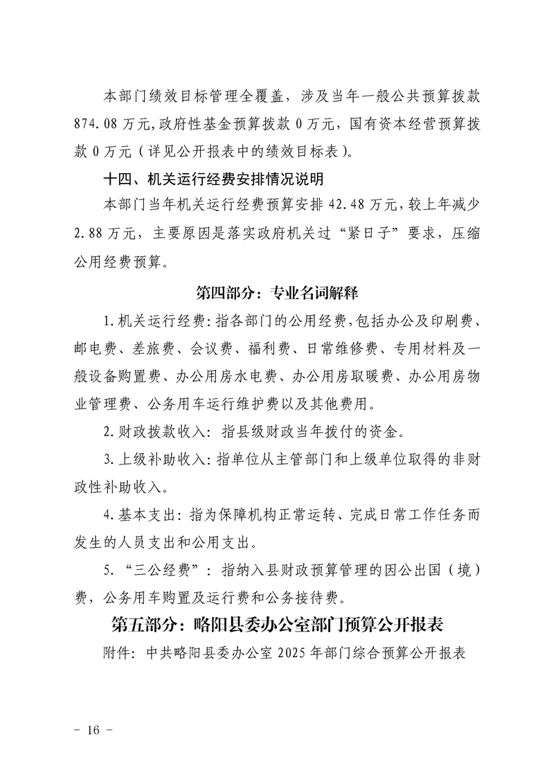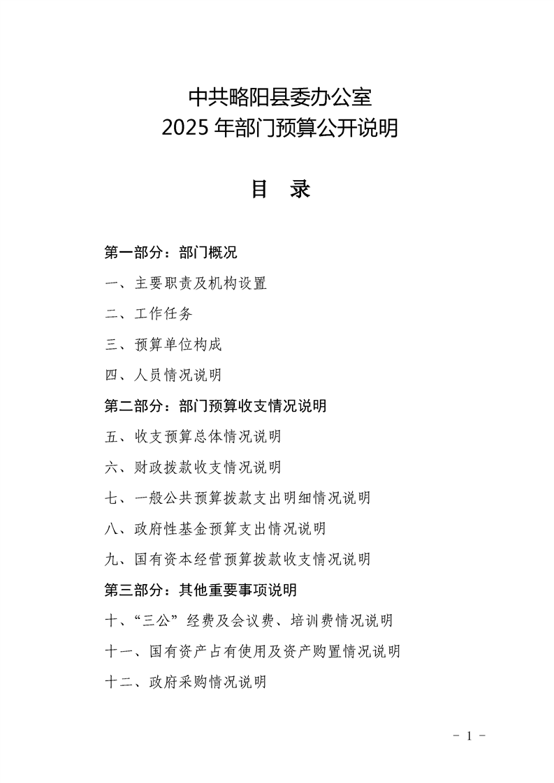 | 内容概述 | 中共略阳县委办公室2025年部门预算公开说明 | ||||