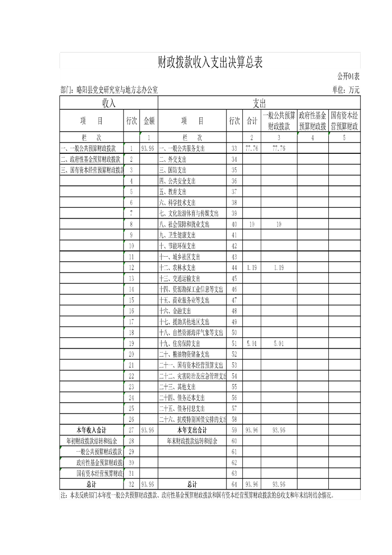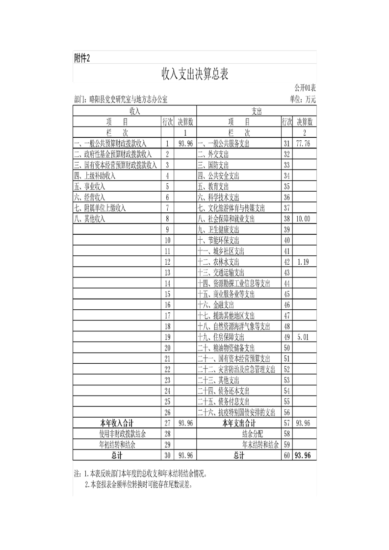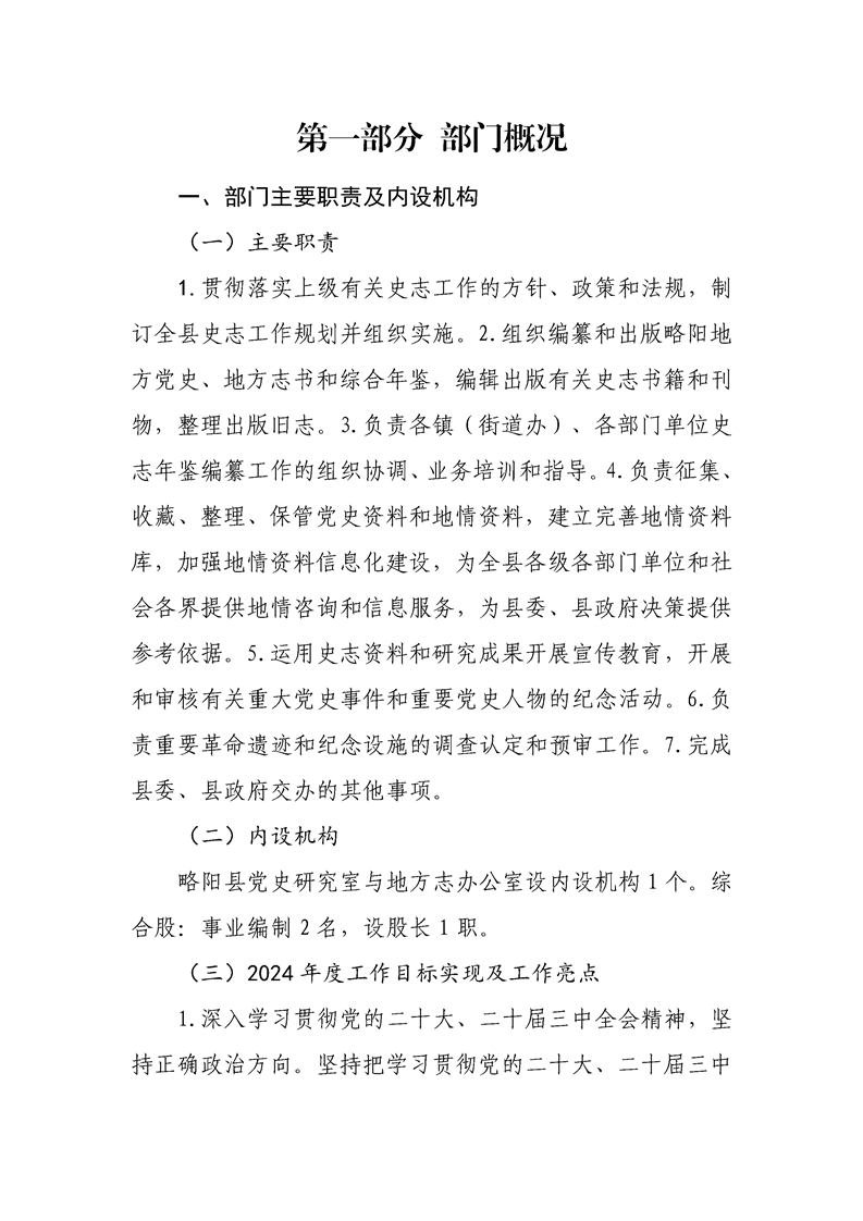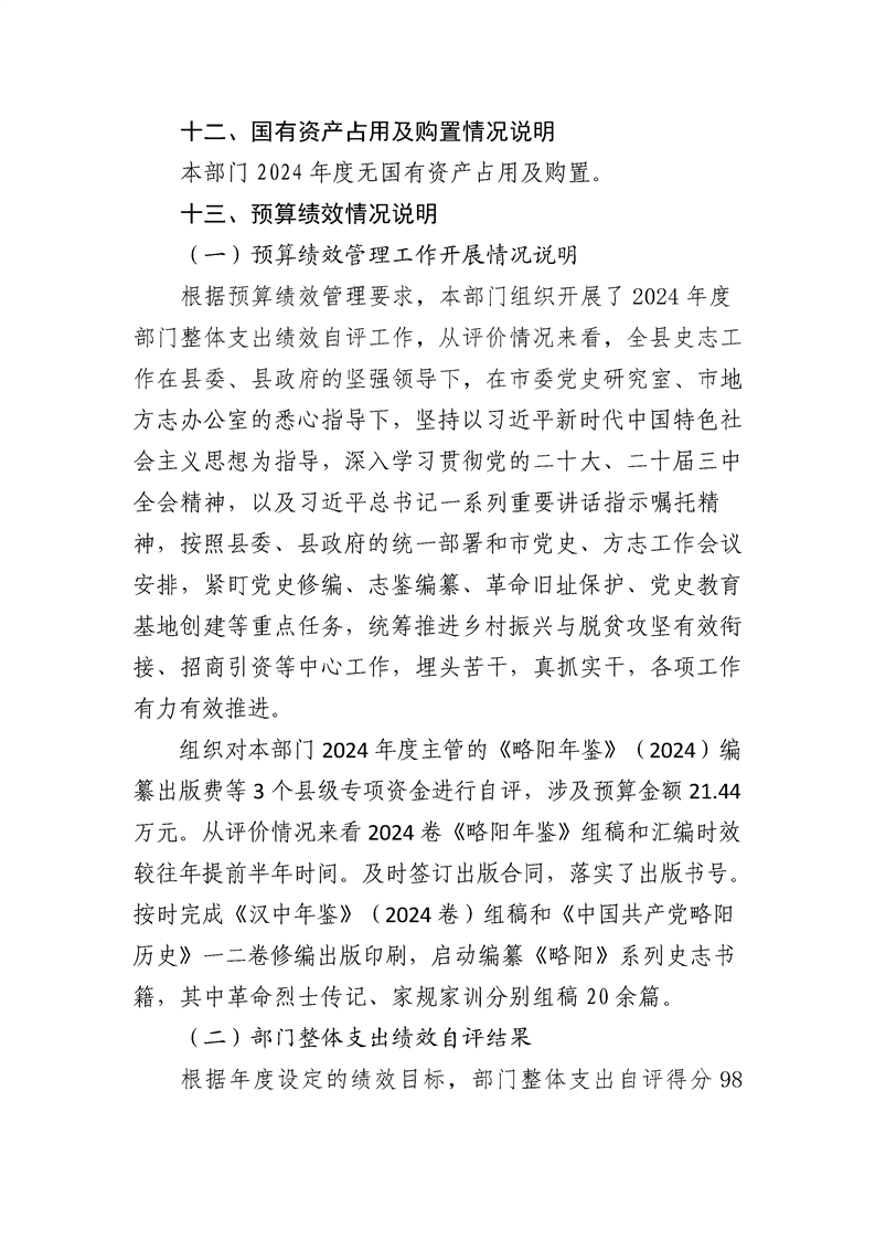 | 内容概述 | 略阳县党史研究室与地方志办公室2024年度部门决算 | ||||