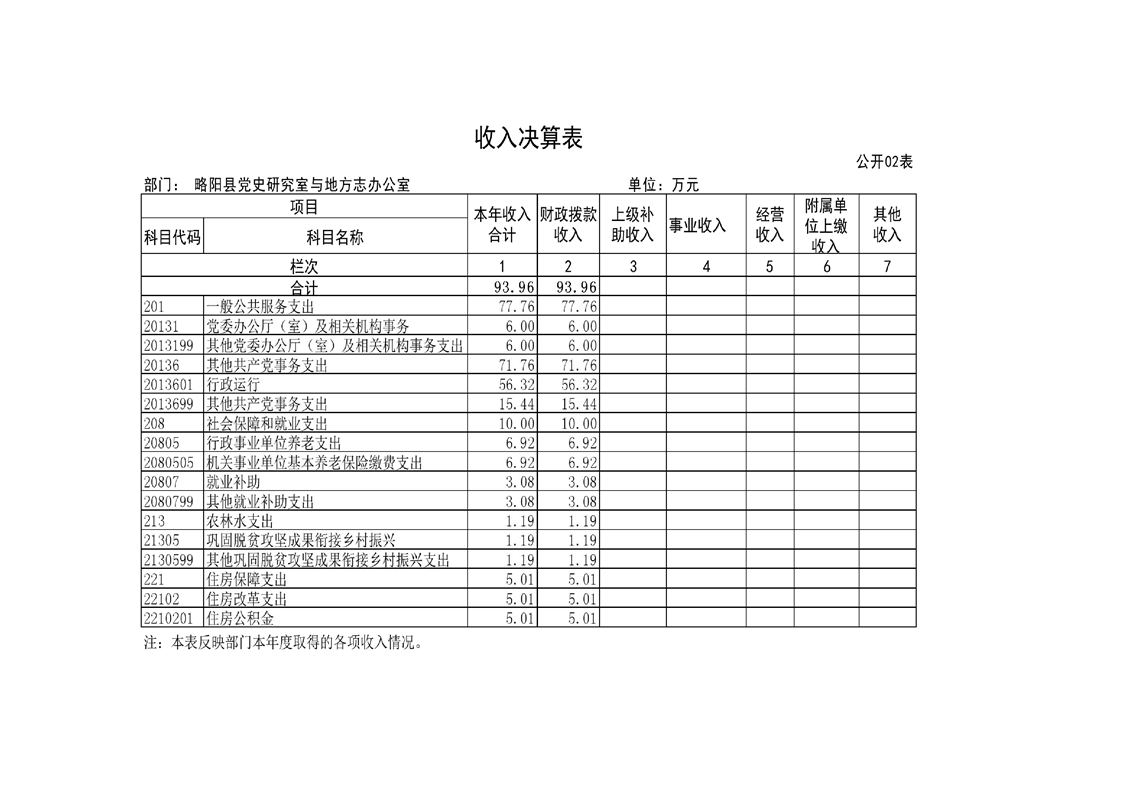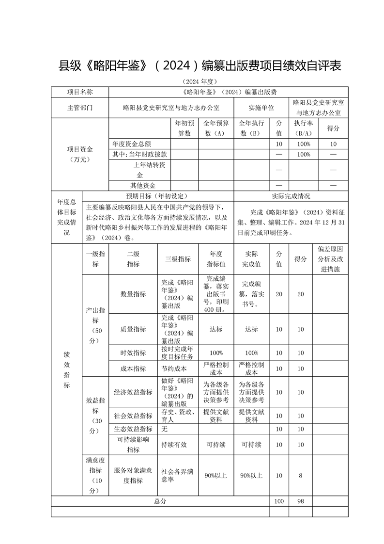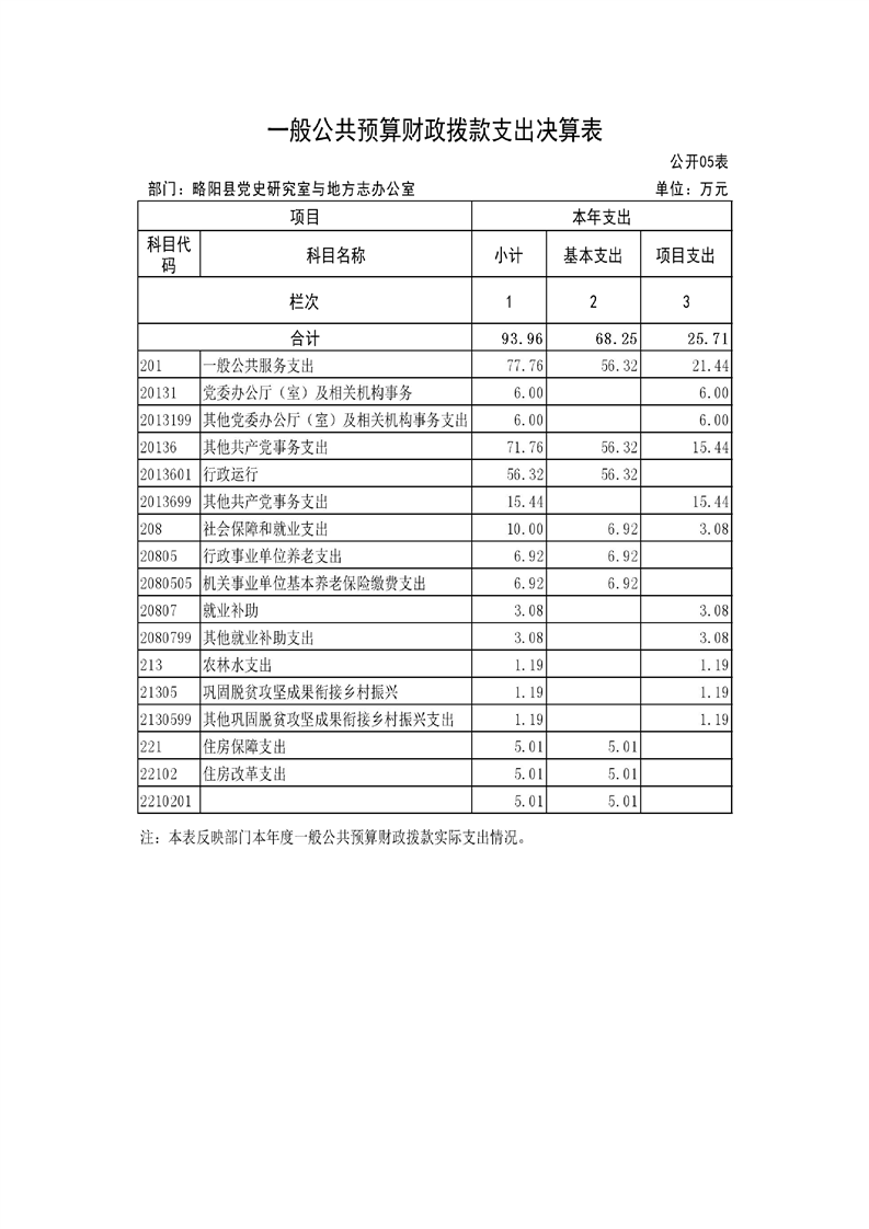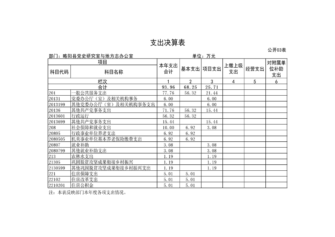 | 内容概述 | 略阳县党史研究室与地方志办公室2024年度部门决算 | ||||