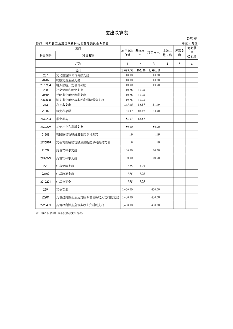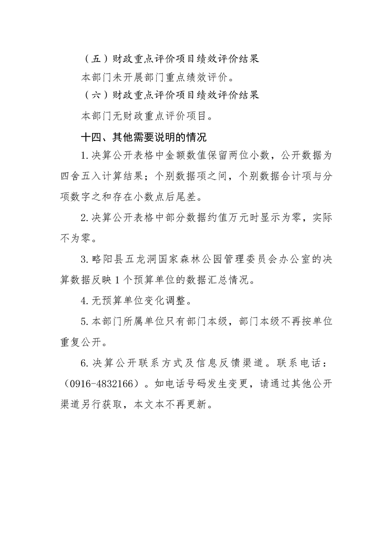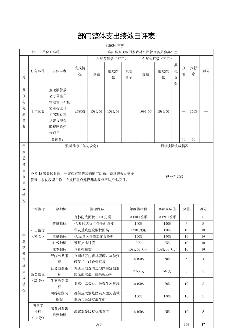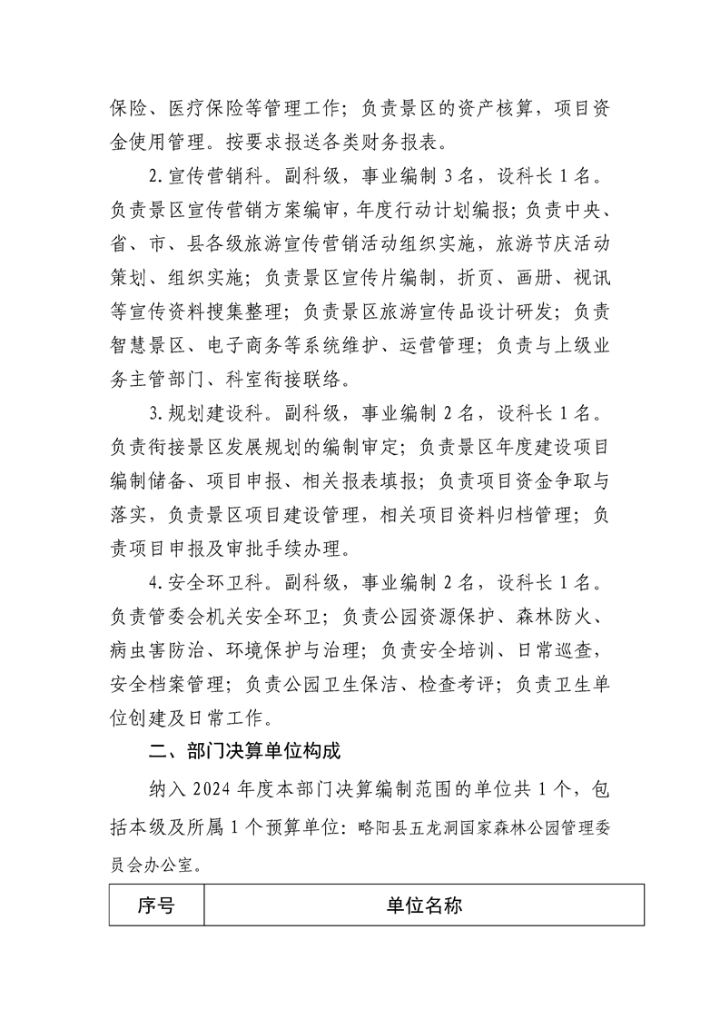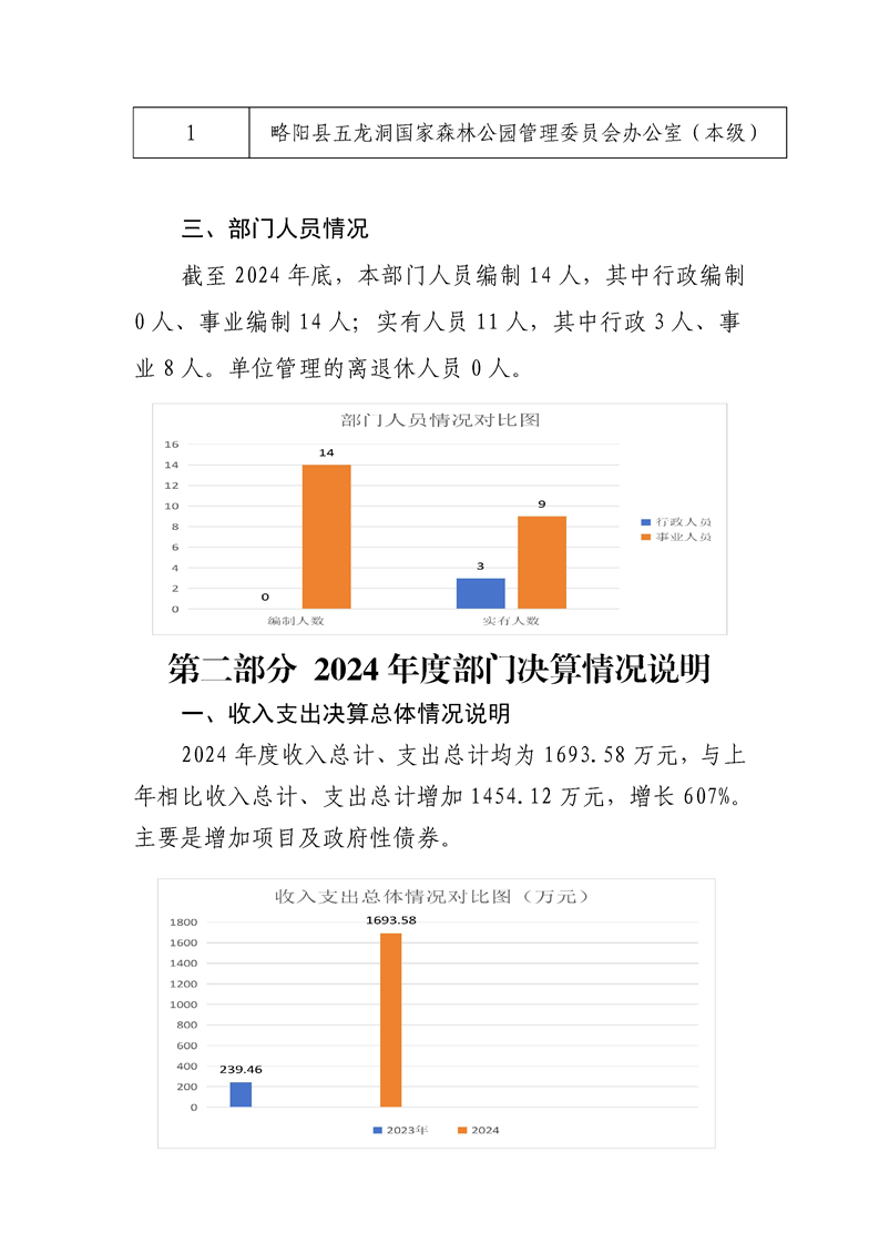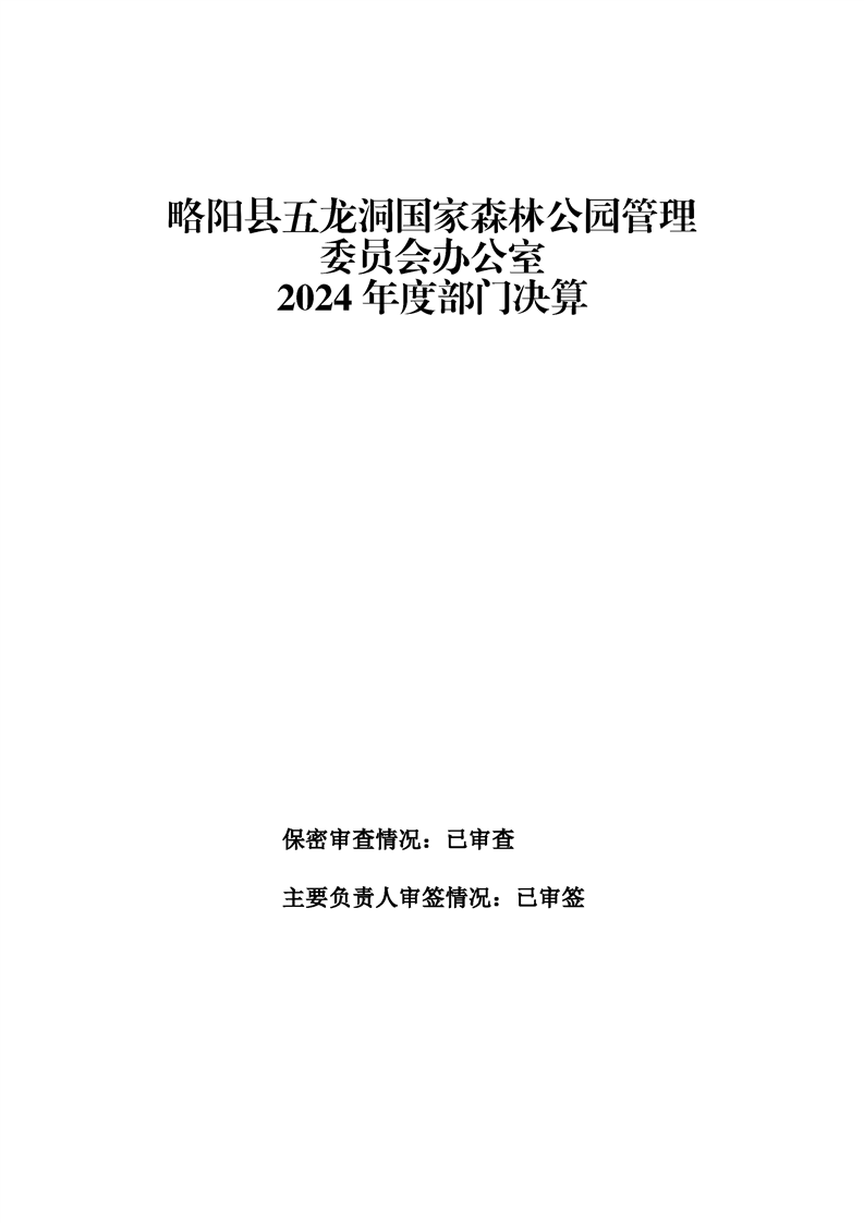 | 内容概述 | 略阳县五龙洞国家森林公园管理委员会办公室2024年度部门决算 | ||||