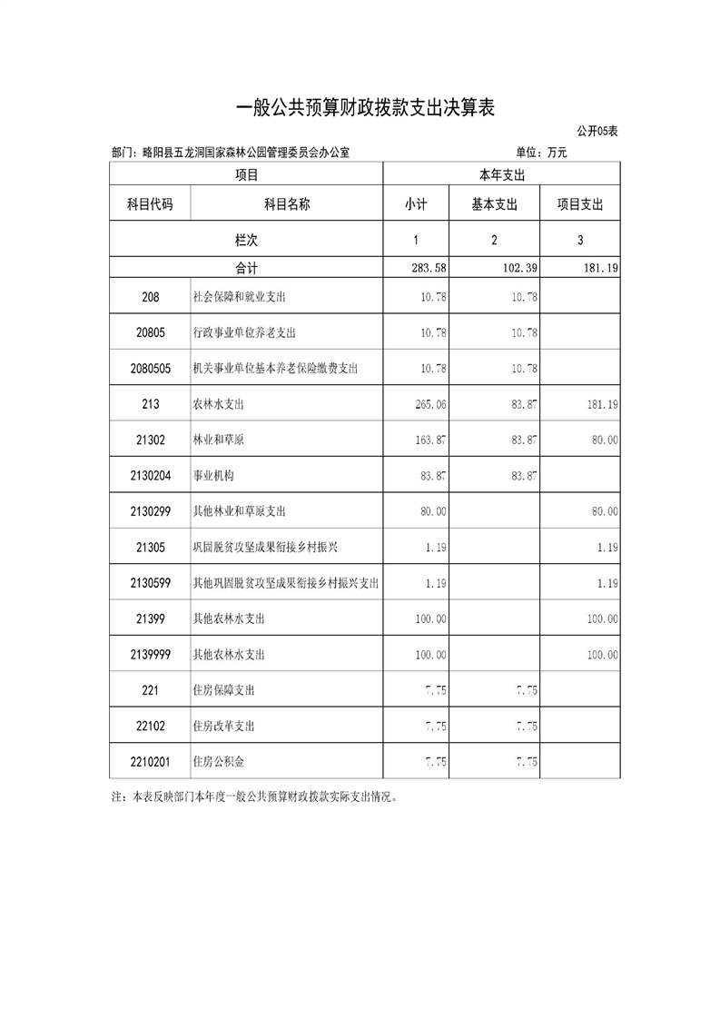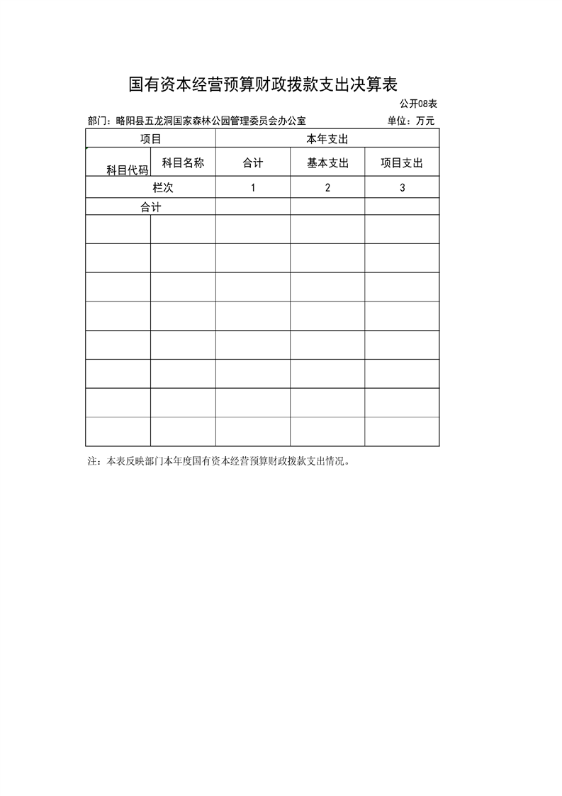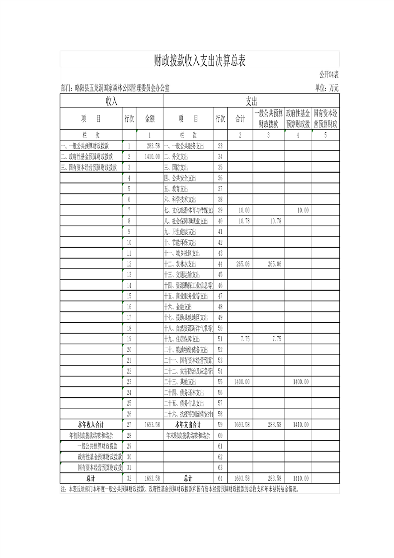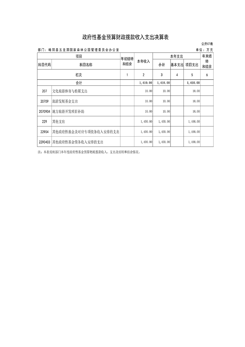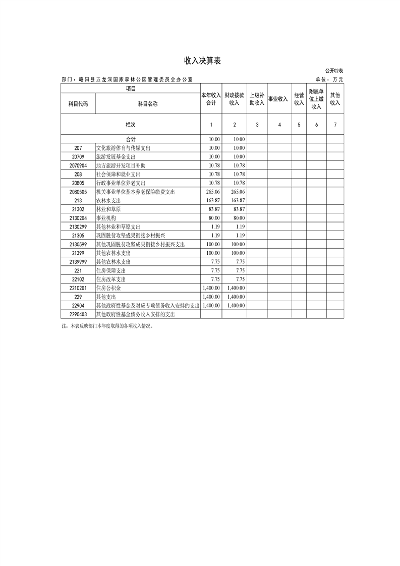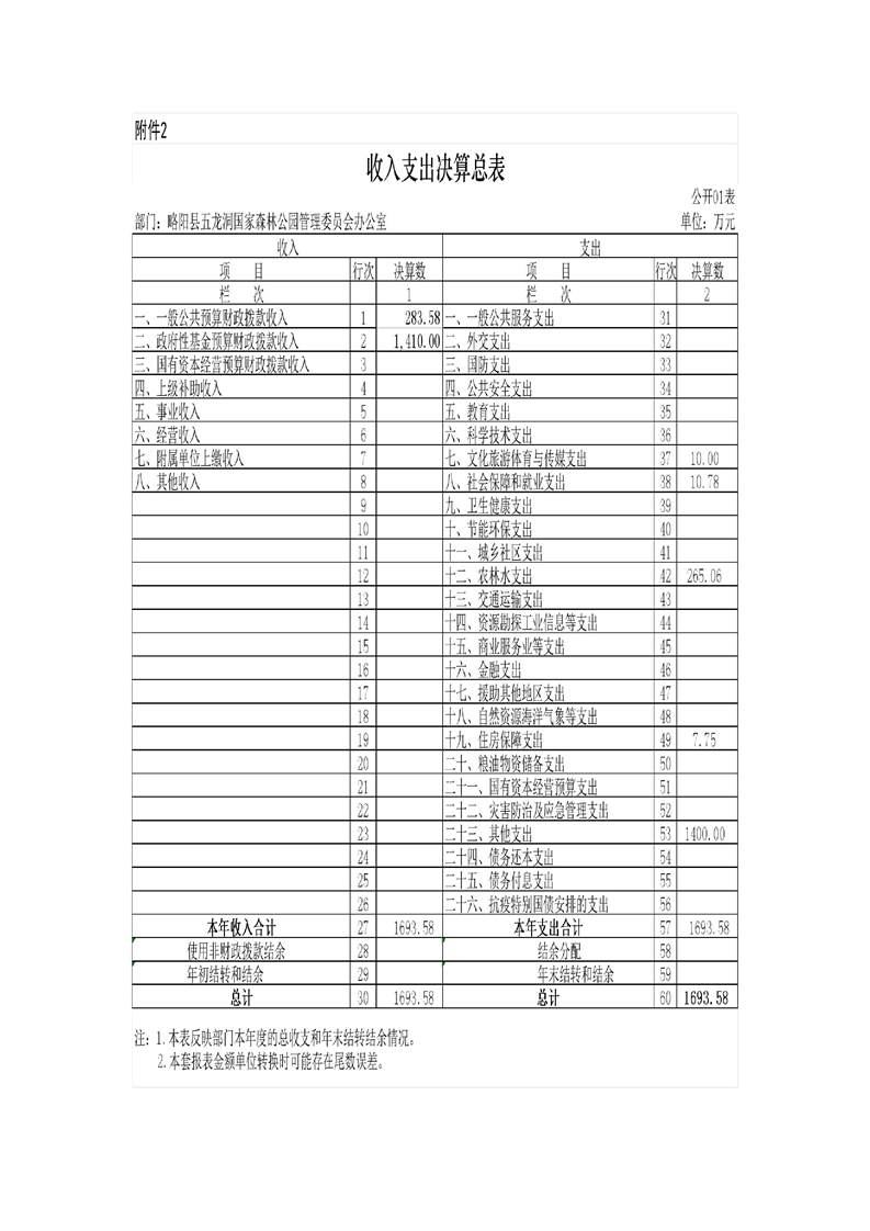 | 内容概述 | 略阳县五龙洞国家森林公园管理委员会办公室2024年度部门决算 | ||||