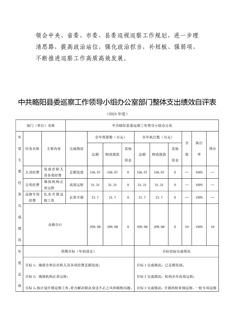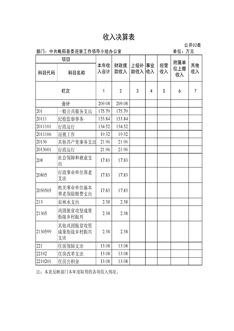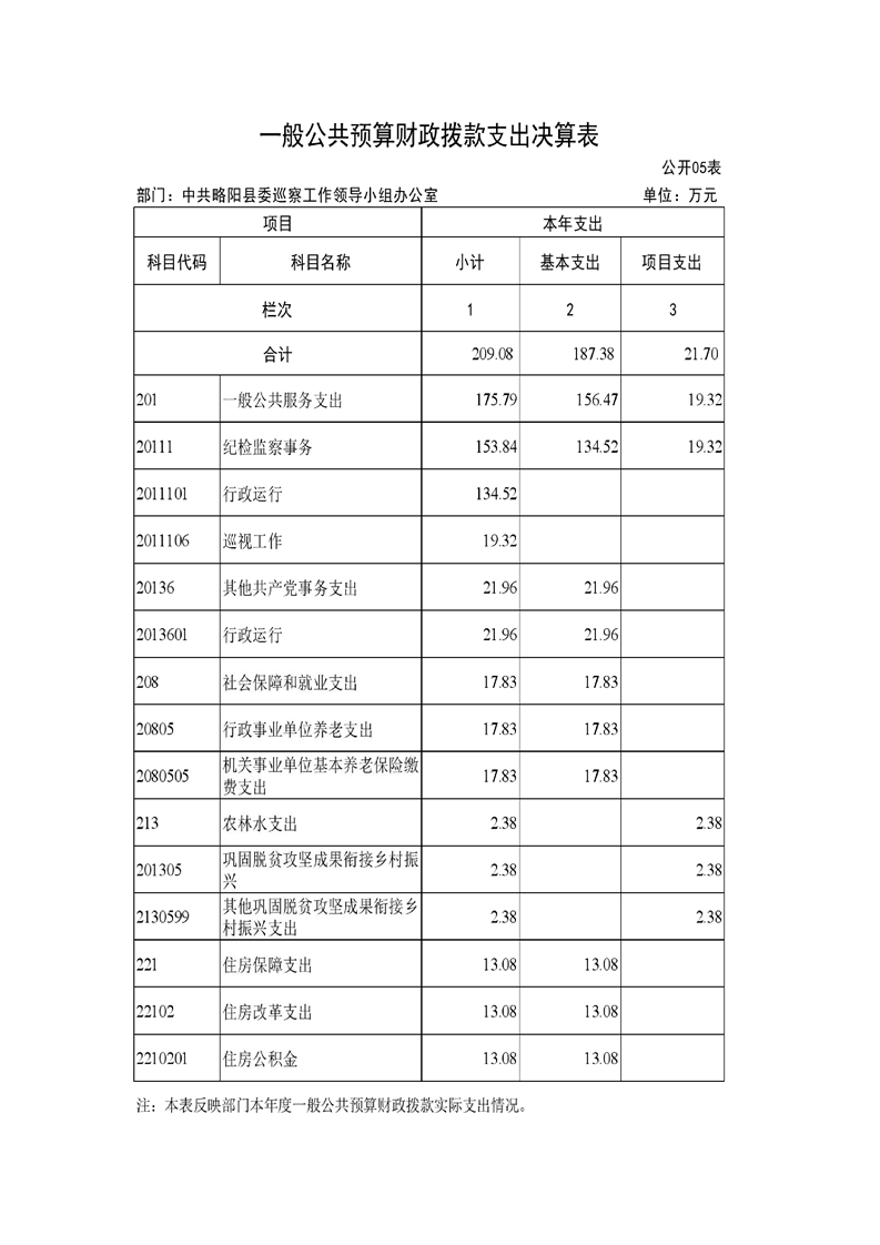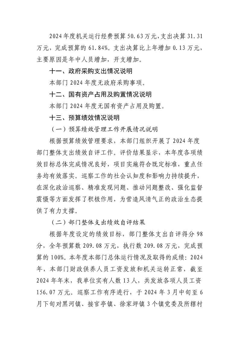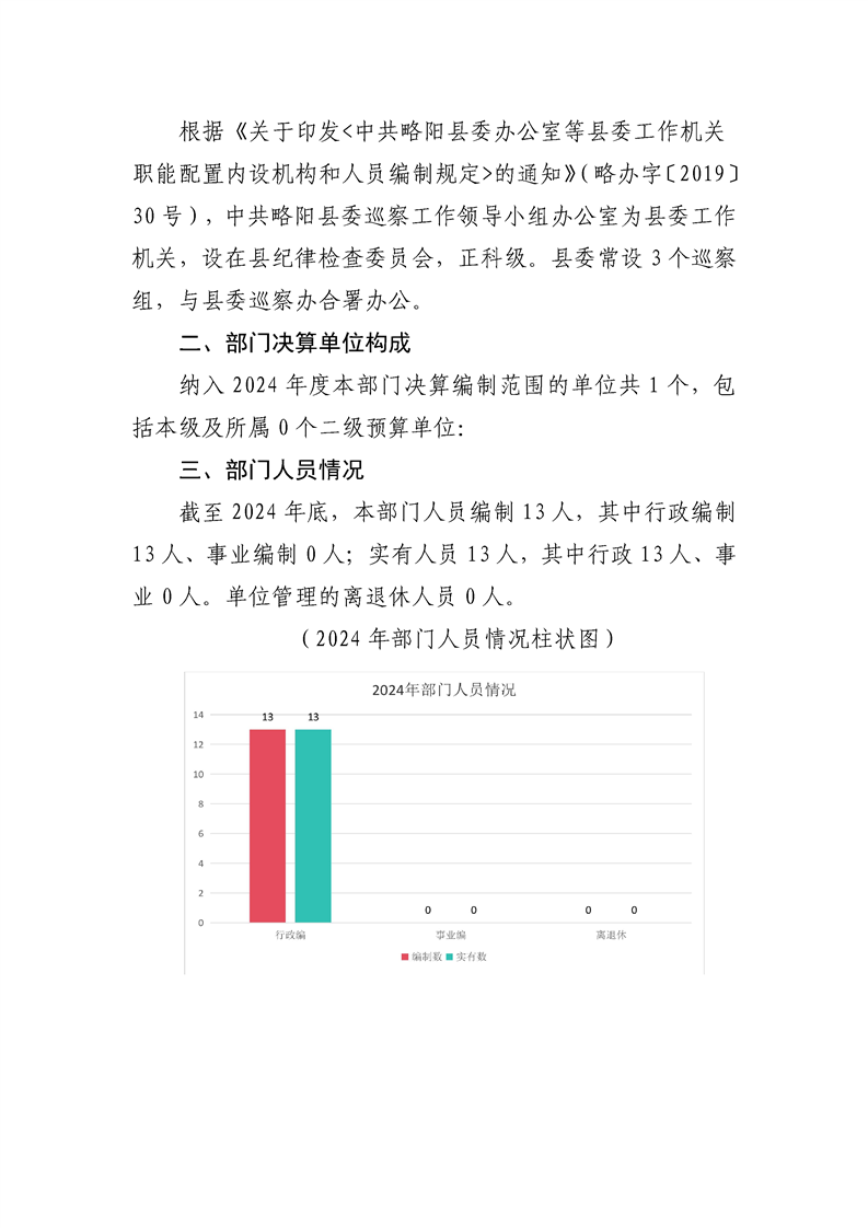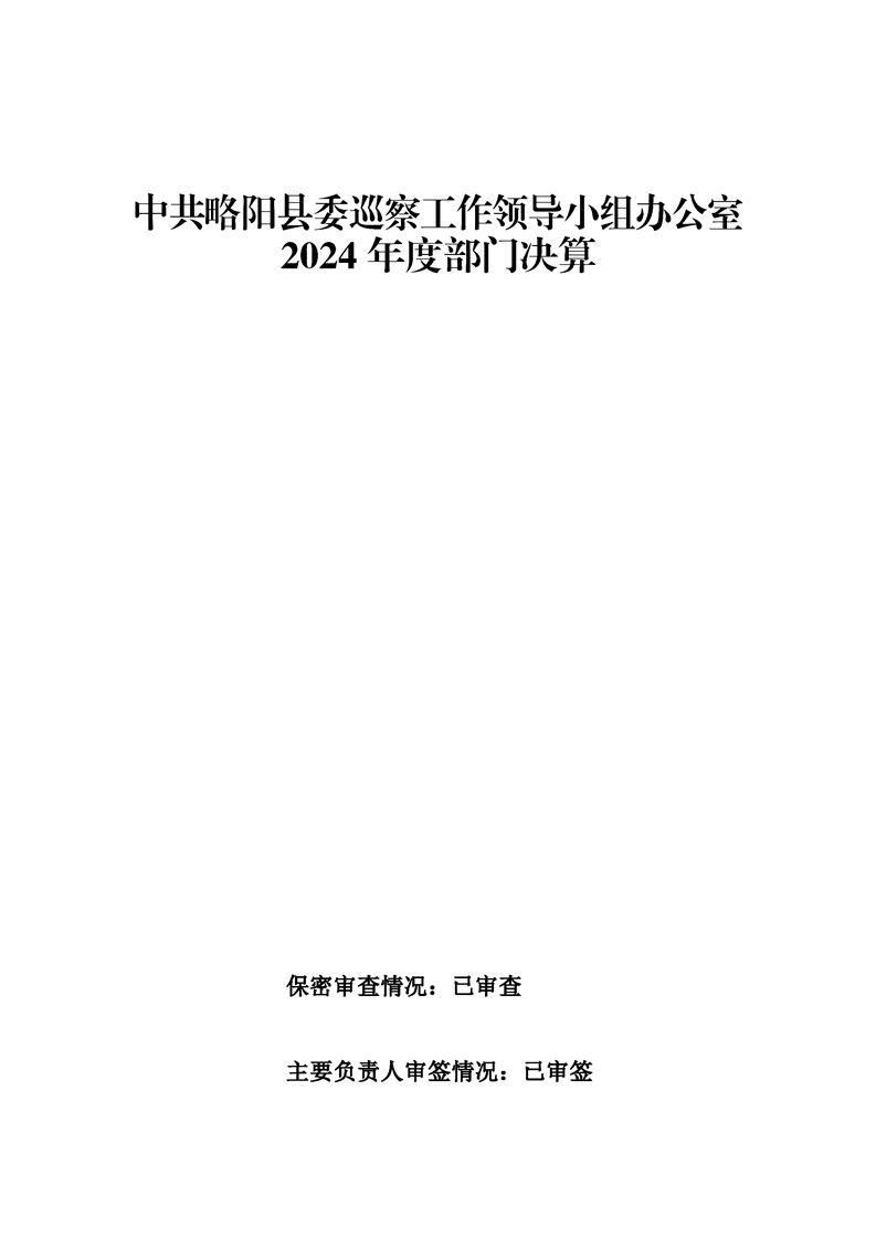 | 内容概述 | 中共略阳县委巡察工作领导小组办公室2024年度部门决算 | ||||