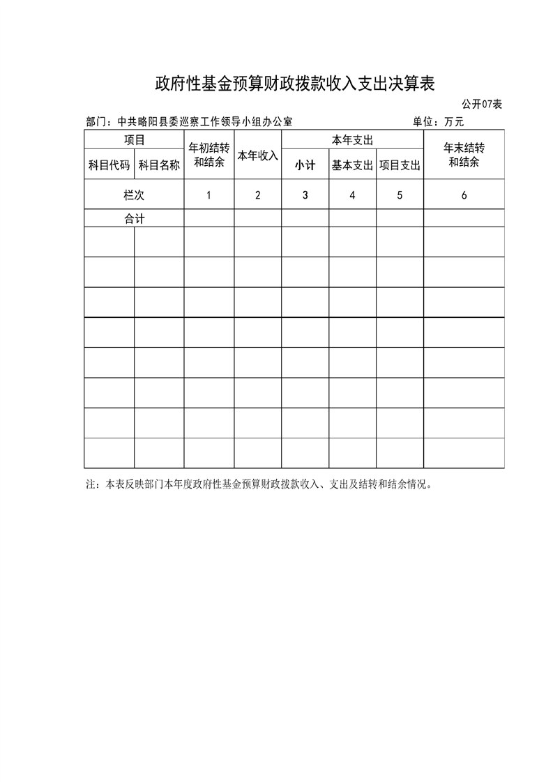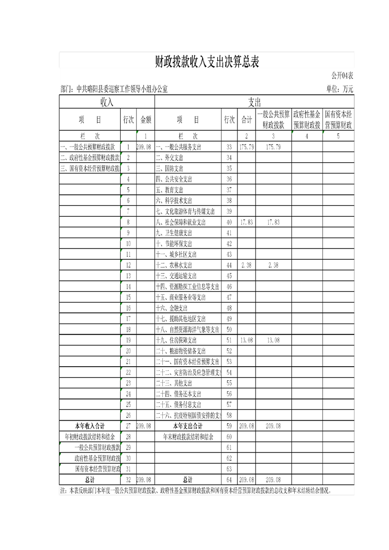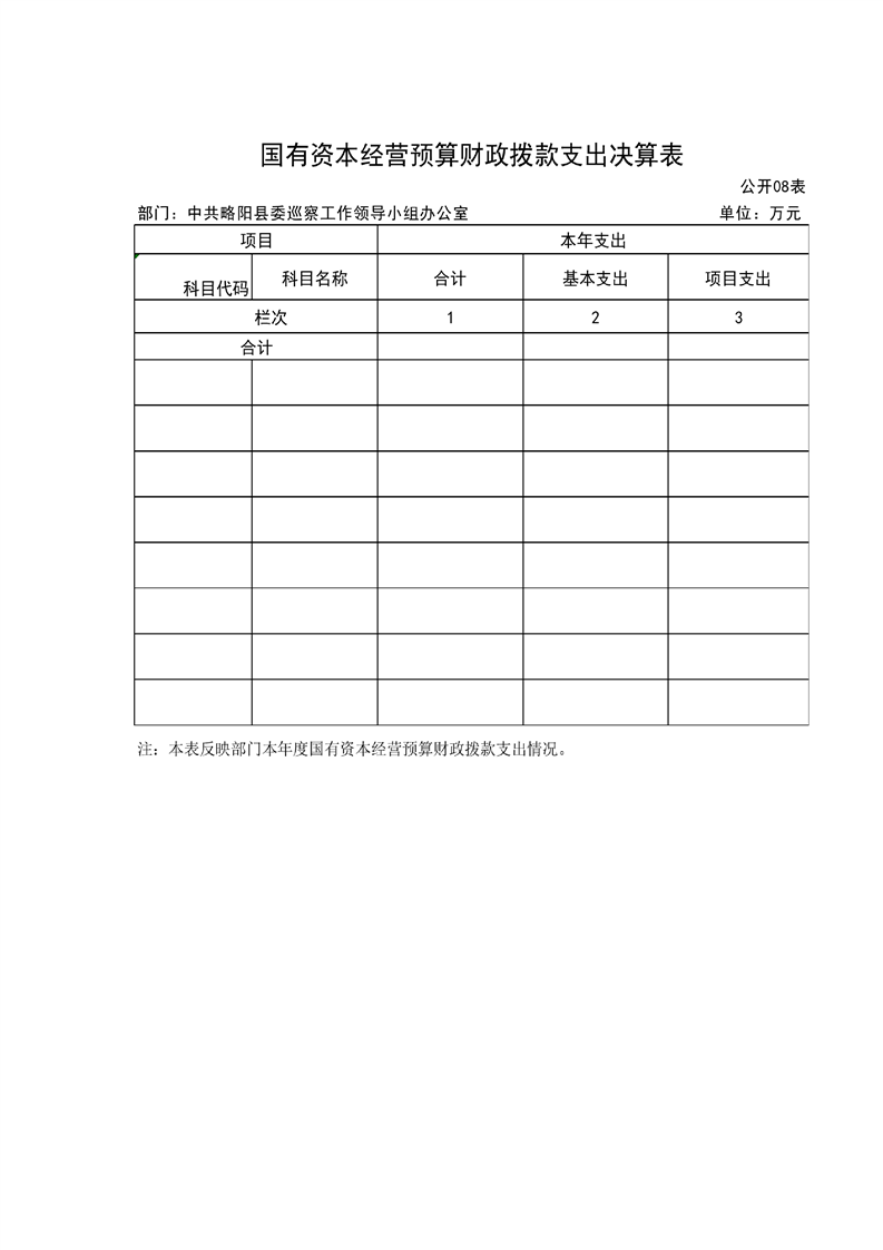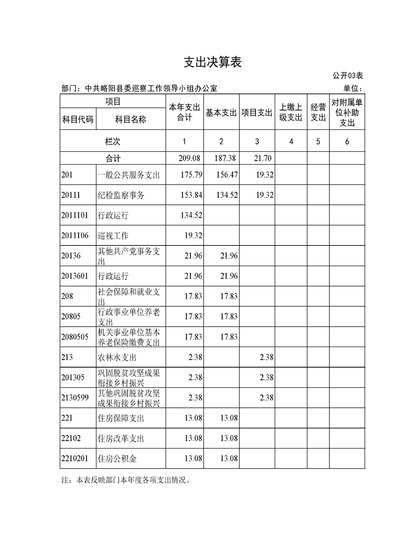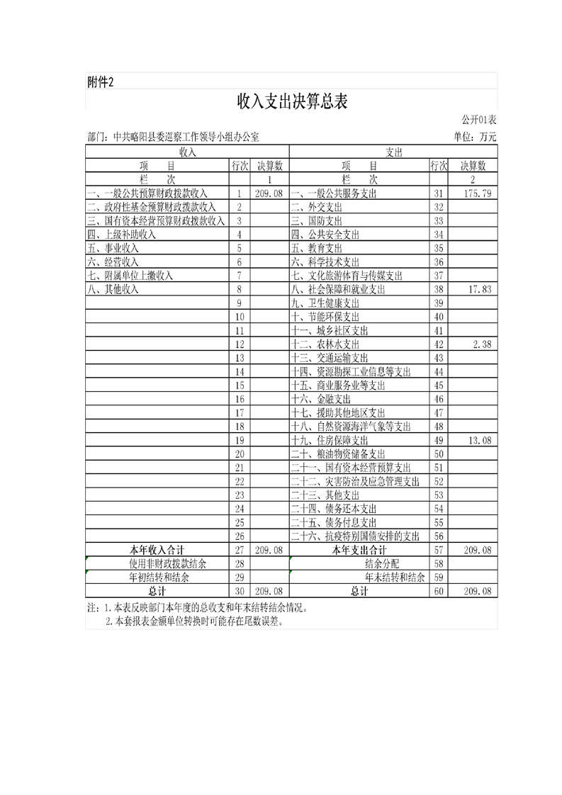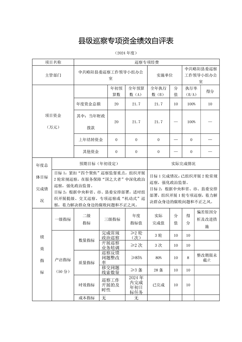 | 内容概述 | 中共略阳县委巡察工作领导小组办公室2024年度部门决算 | ||||