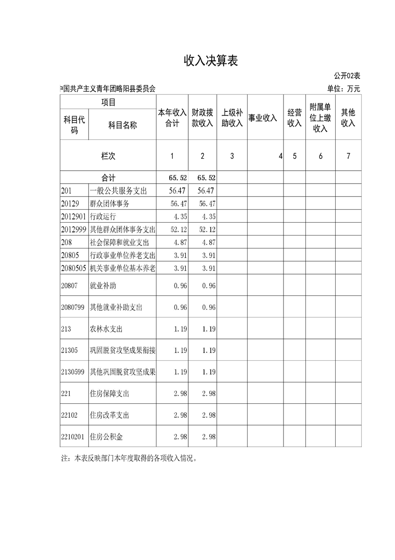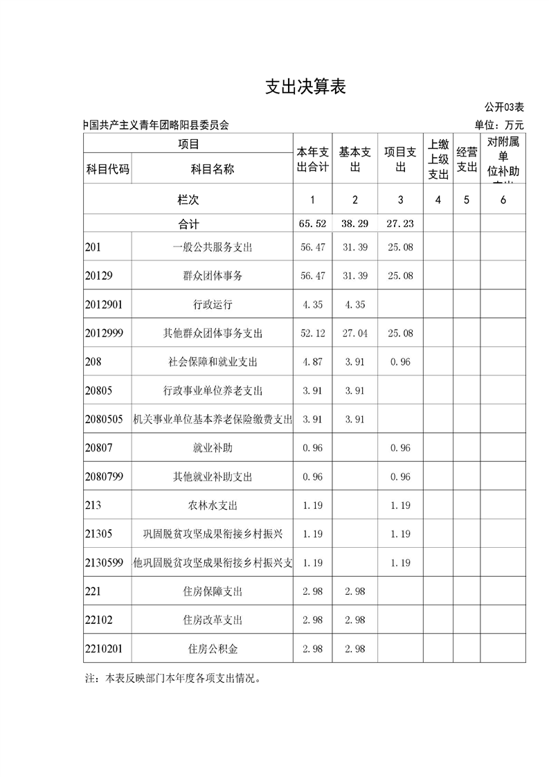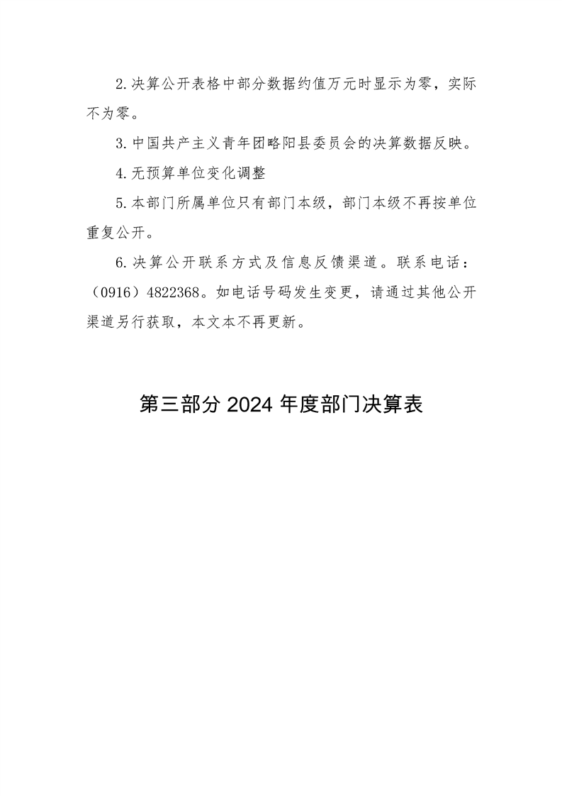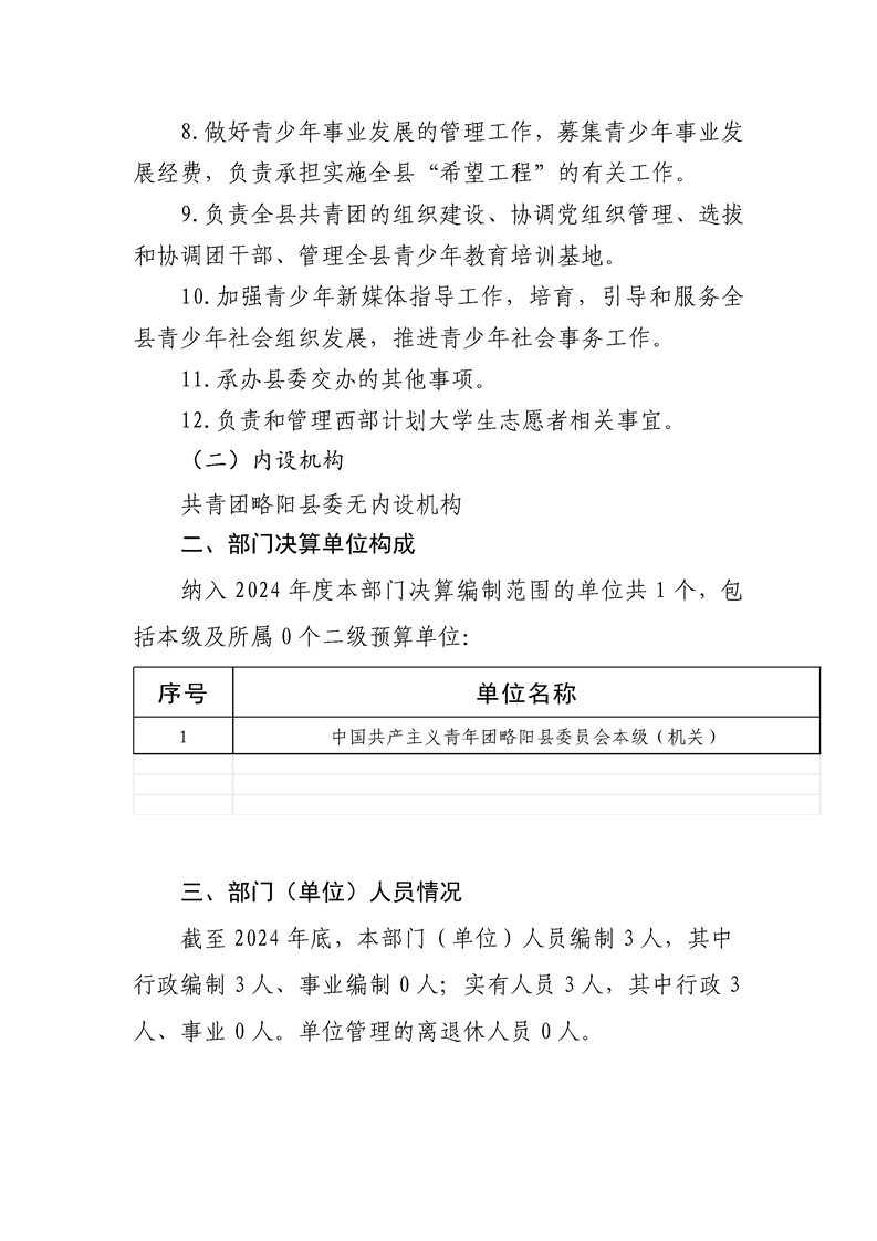 | 内容概述 | 中国共产主义青年团略阳县委员会2024年度部门决算 | ||||