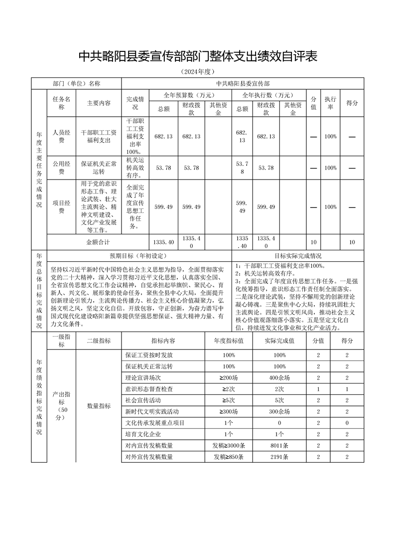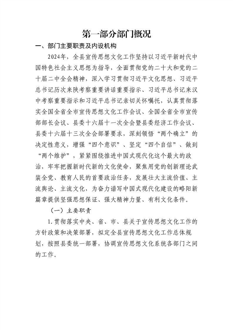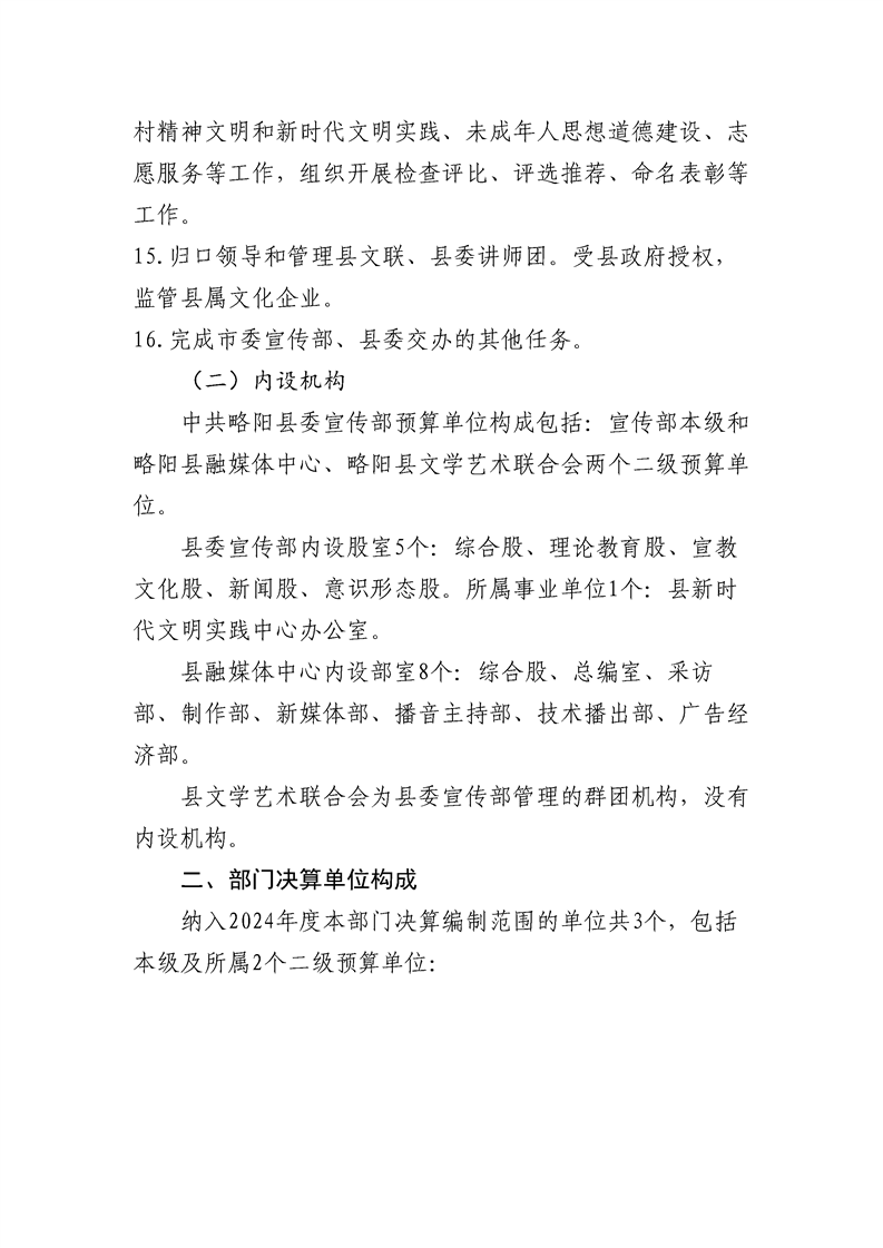 | 内容概述 | 中共略阳县委宣传部(汇总)2024年度部门决算 | ||||