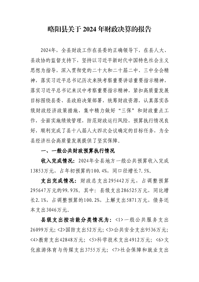 | 内容概述 | 略阳县关于2024年财政决算的报告 | ||||