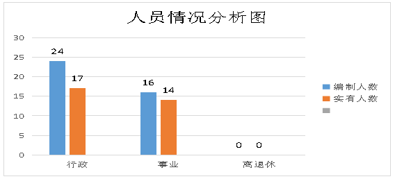 截至2022年底,本部门人员编制40人,其中行政编制24人、事业编制16人;实有人员31人,其中行政17人、事业14人。单位管理的离退休人员0人。