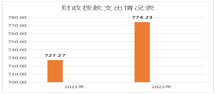 2022年度一般公共预算财政拨款支出年初预算387.56万元,支出决算774.23万元,完成年初预算的199.77%,占本年支出合计的199.78%。与上年相比,财政拨款支出增加46.96万元,增长6.46%,主要原因是乡村振兴项目支出增加。