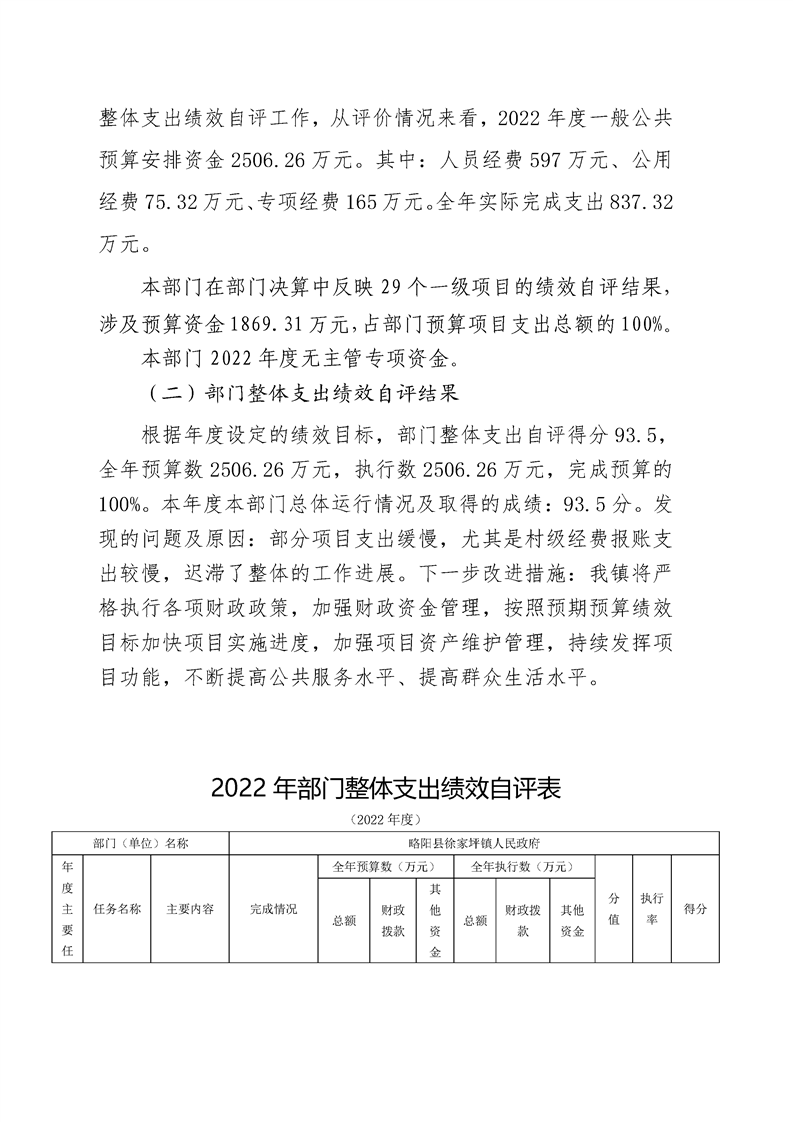 | 内容概述 | 略阳县徐家坪镇人民政府2022年度部门决算 | ||||