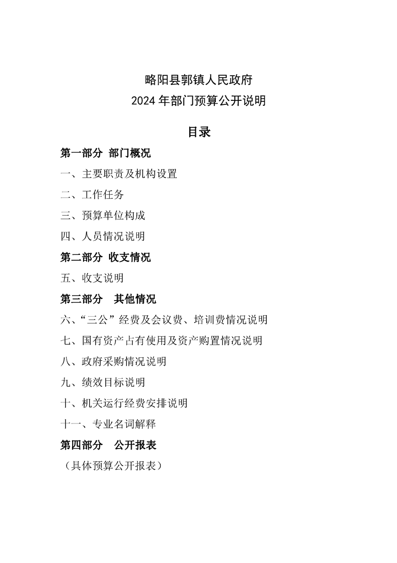 | 内容概述 | 略阳县郭镇人民政府2024年部门综合预算公开 | ||||
