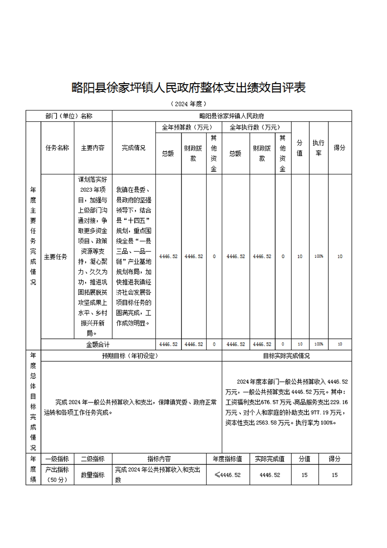 | 内容概述 | 略阳县徐家坪镇人民政府2024年度部门决算公开 | ||||