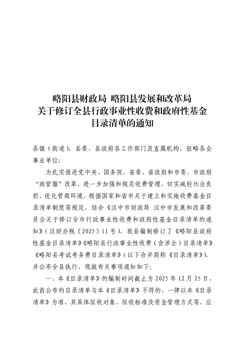 | 内容概述 | 略阳县财政局 略阳县发展和改革局关于修订全县行政事业性收费和政府性基金目录清单的通知 | ||||