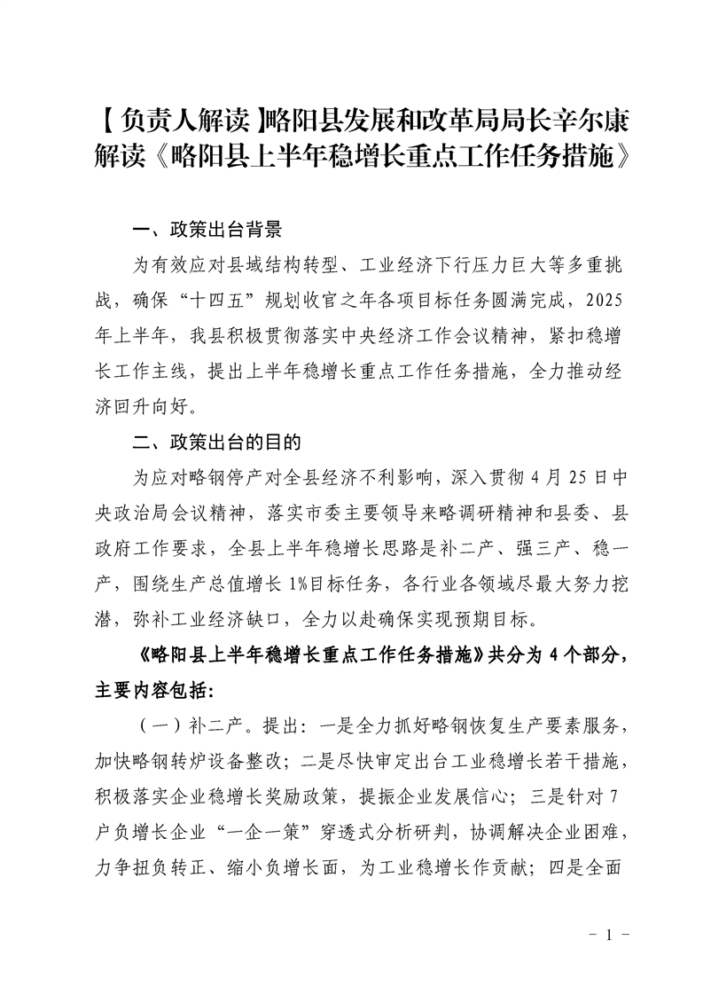 | 内容概述 | 【负责人解读】略阳县发展和改革局局长辛尔康解读《略阳县上半年稳增长重点工作任务措施》 | ||||