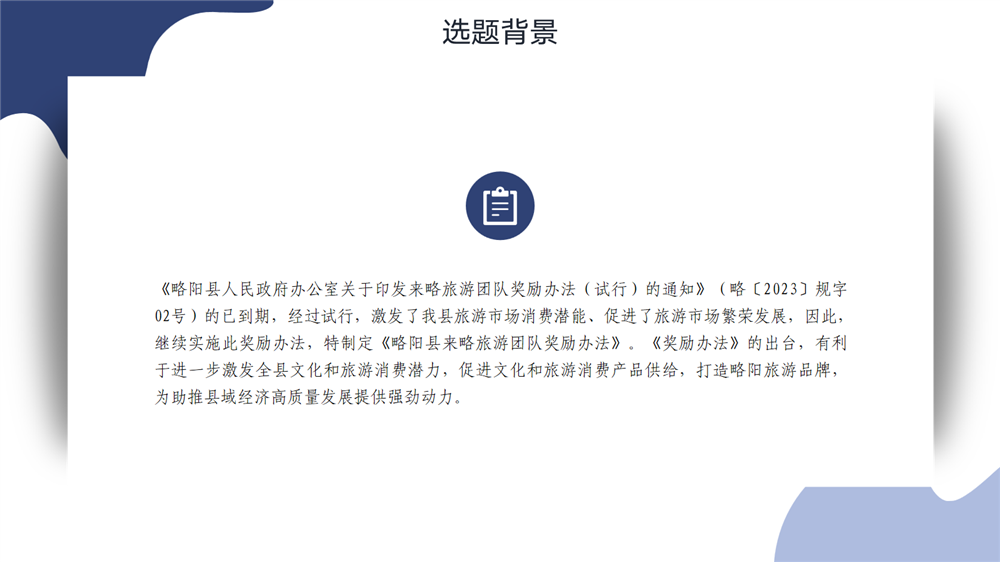 | 内容概述 | 【图文解读】《略阳县来略旅游团队奖励办法》 | ||||
