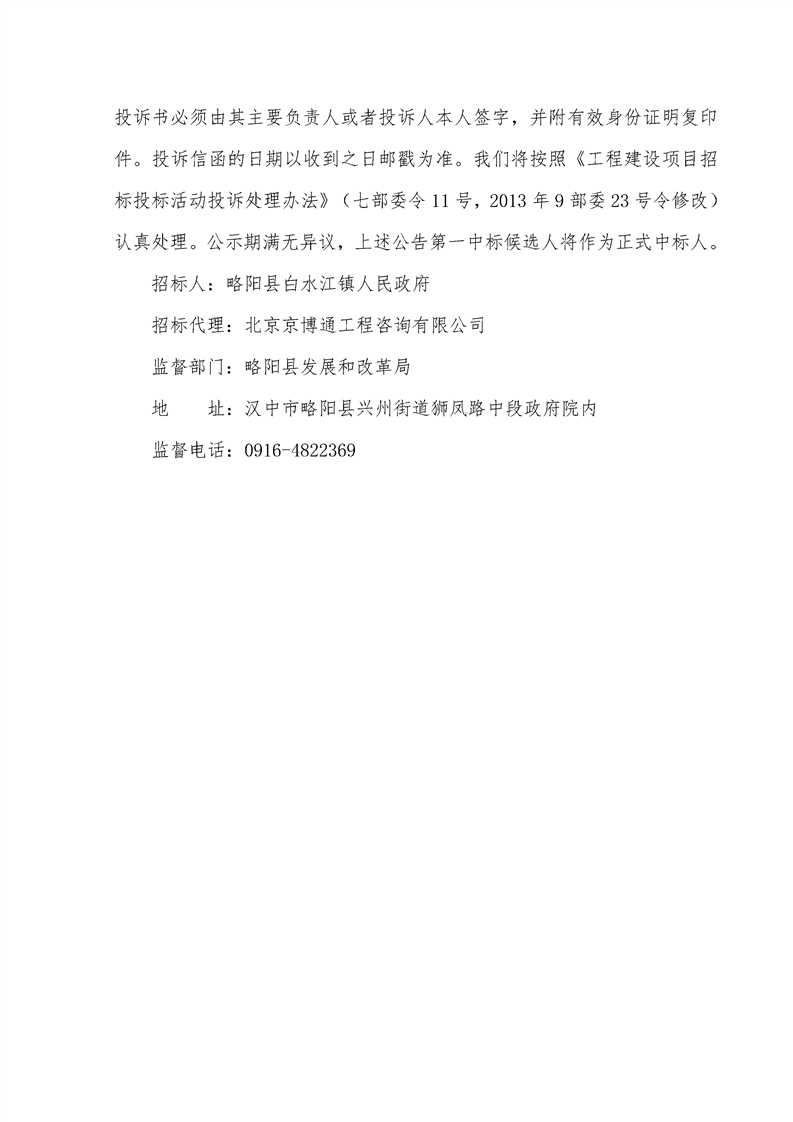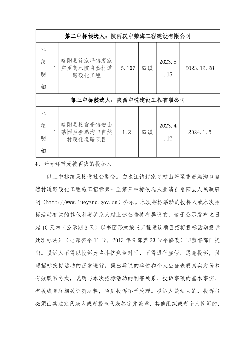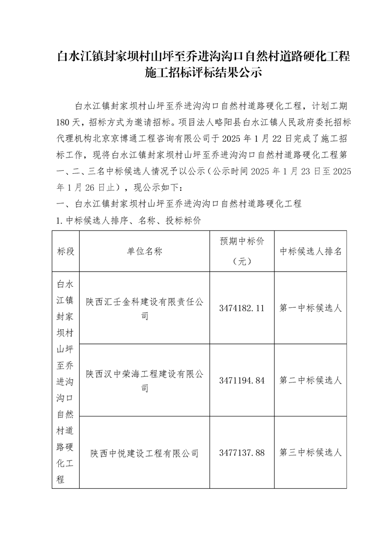 白水江镇封家坝村山坪至乔进沟沟口自然村道路硬化工程施工招标评标结果公示