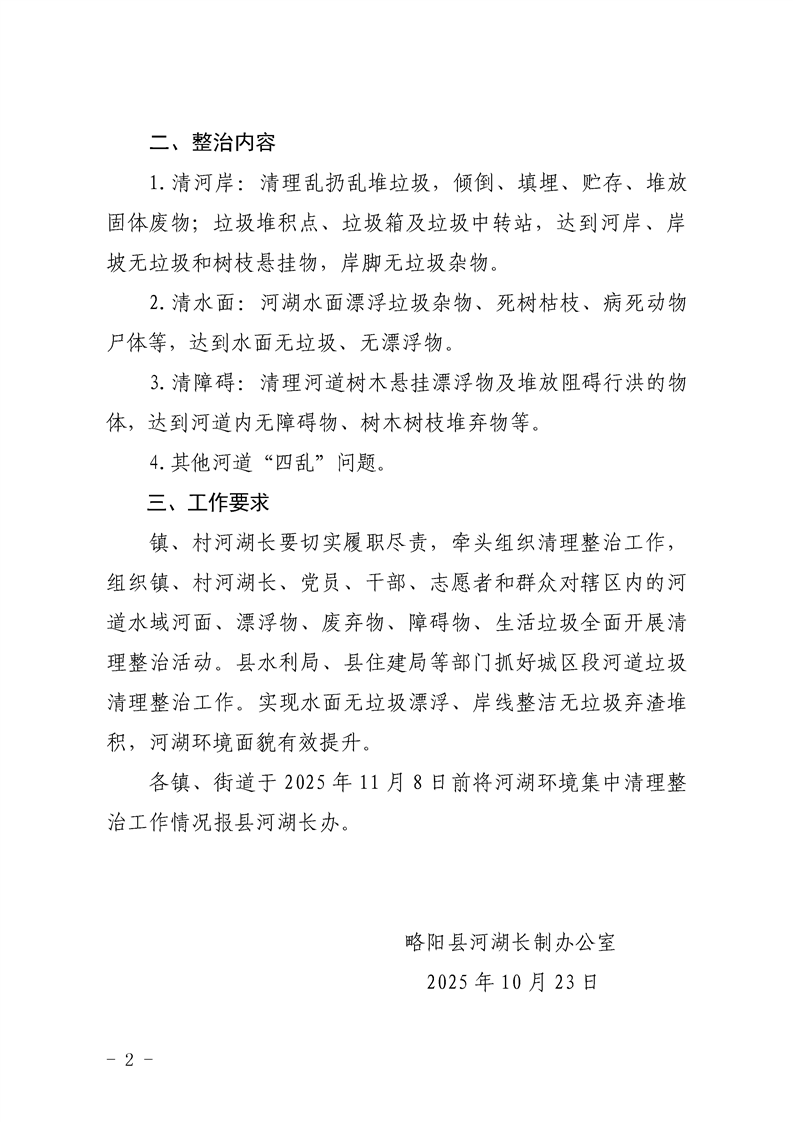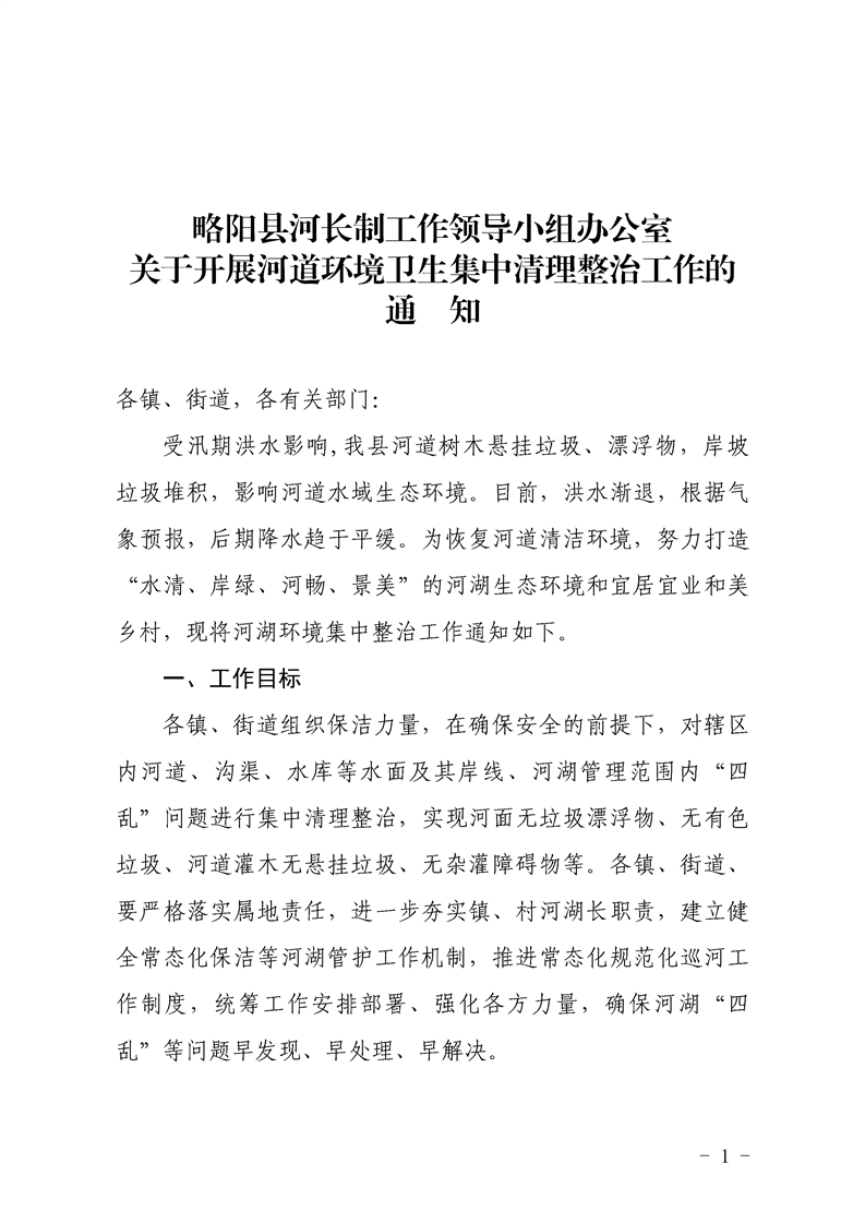 | 内容概述 | 略阳县河长制工作领导小组办公室关于开展河道环境卫生集中清理整治工作的通知 | ||||