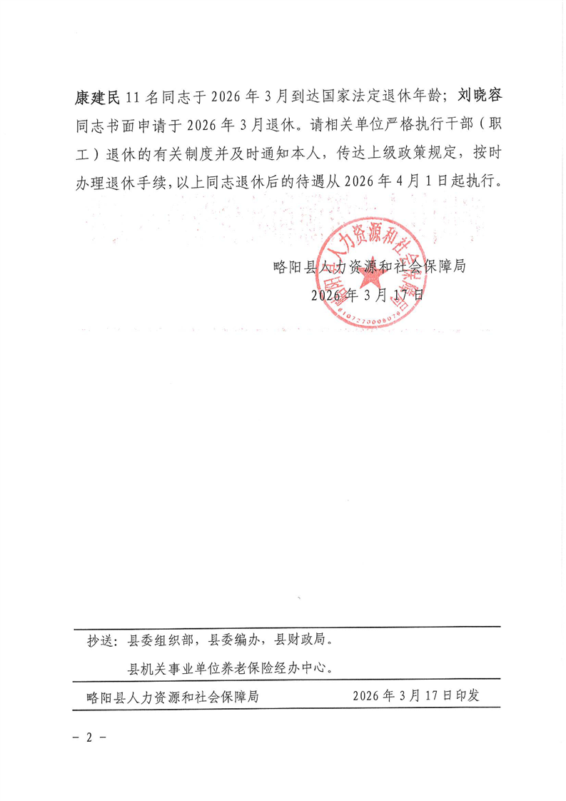 略阳县人力资源和社会保障局关于邹福建等12名同志退休的通知