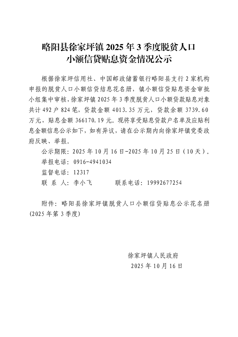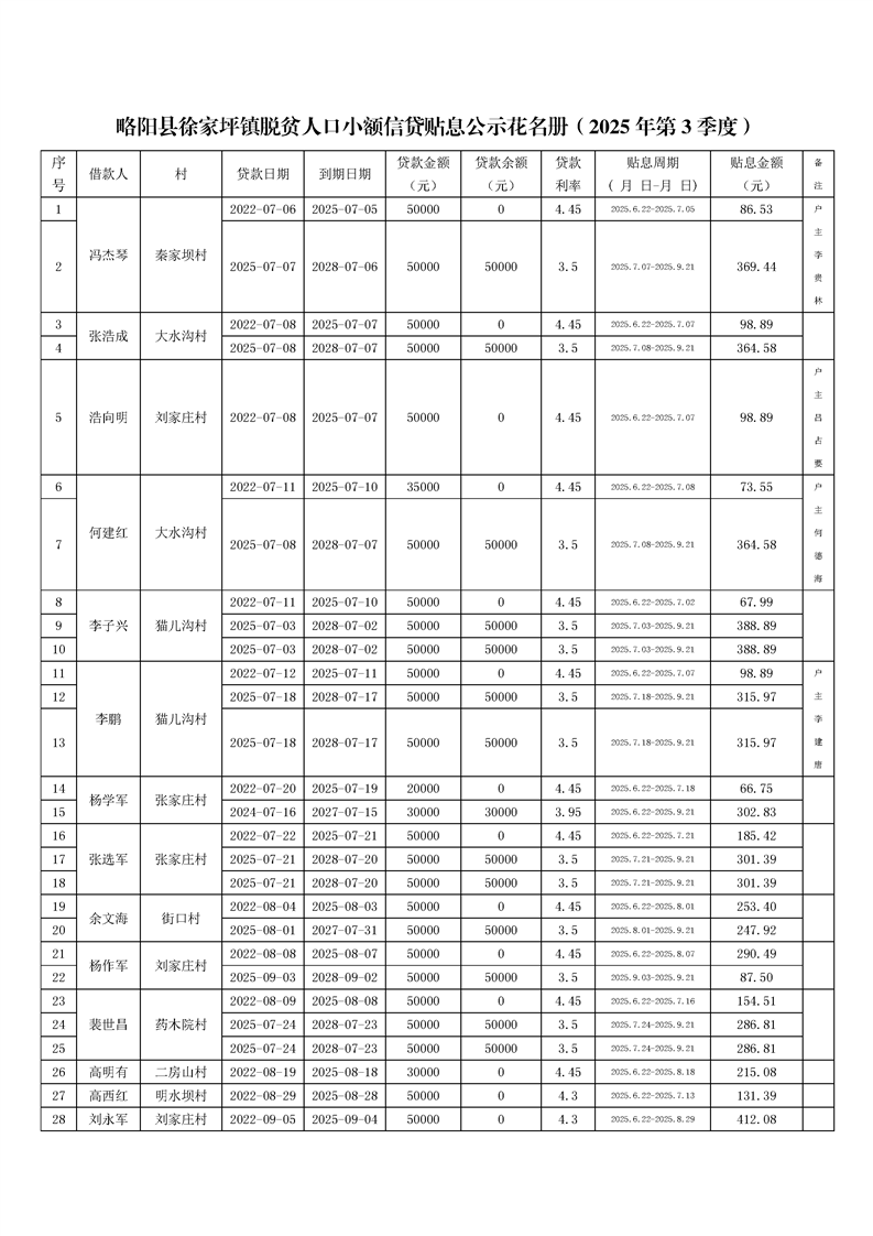 | 内容概述 | 略阳县徐家坪镇2025年3季度脱贫人口小额信贷贴息资金情况公示 | ||||