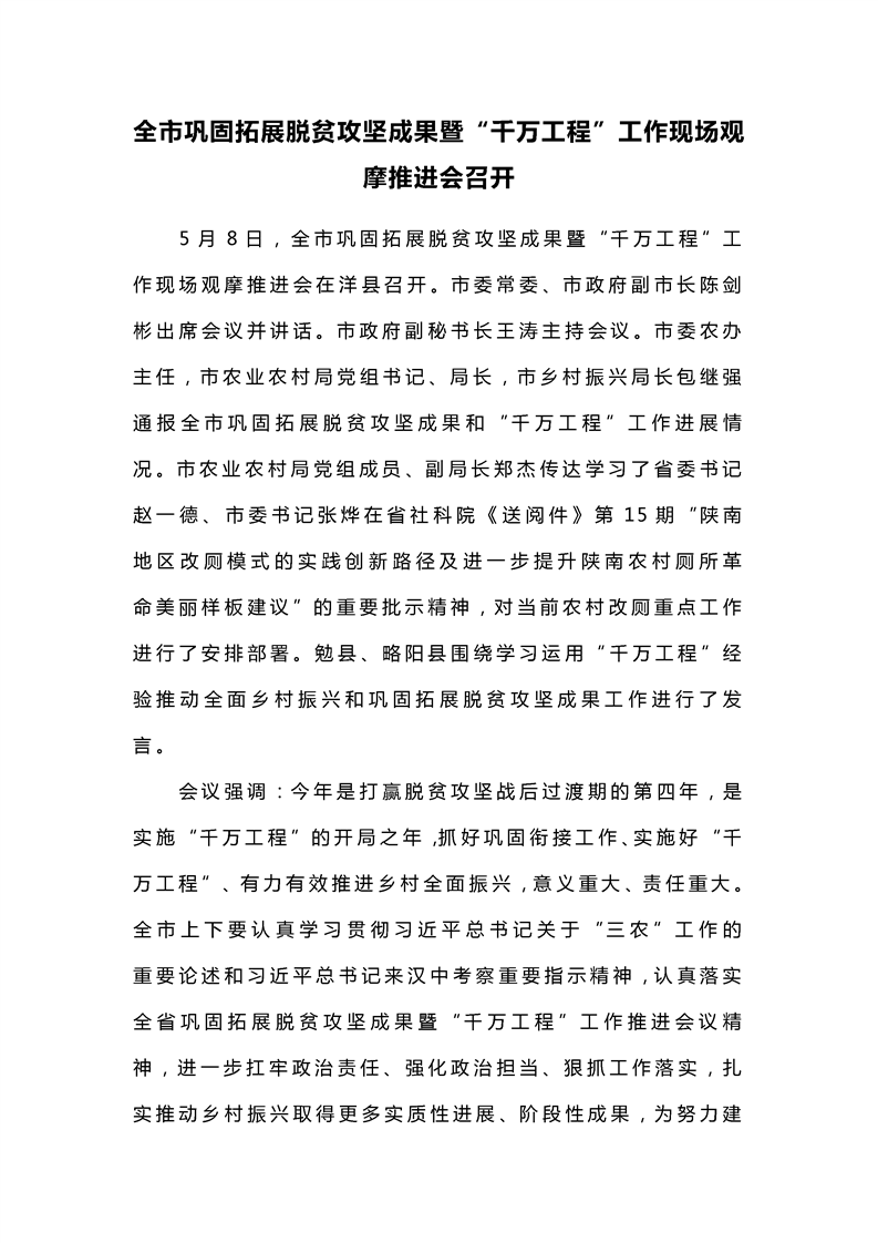 全市巩固拓展脱贫攻坚成果暨“千万工程”工作现场观摩推进会召开