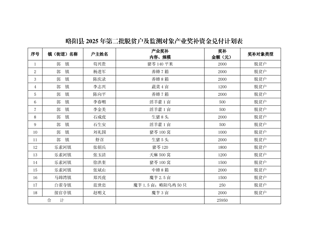 关于2025年第二批脱贫户、监测对象产业奖补资金拟兑付情况的公示