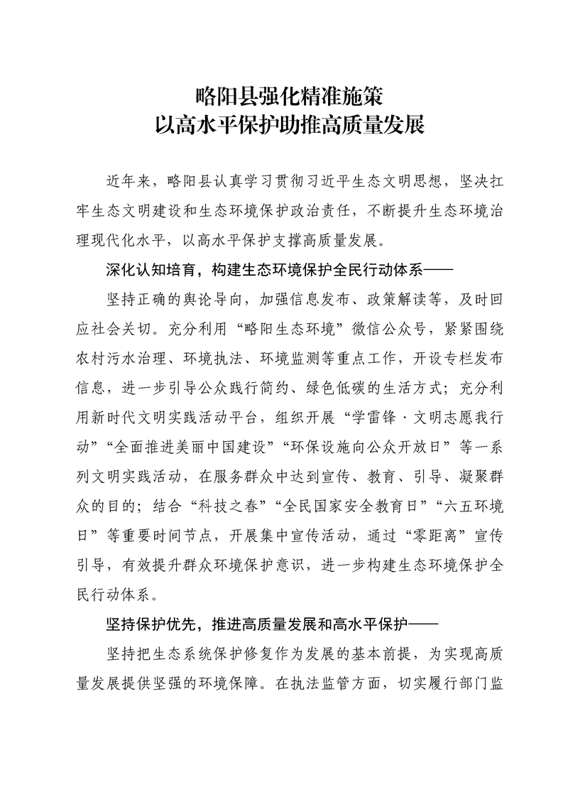略阳县强化精准施策,以高水平保护助推高质量发展